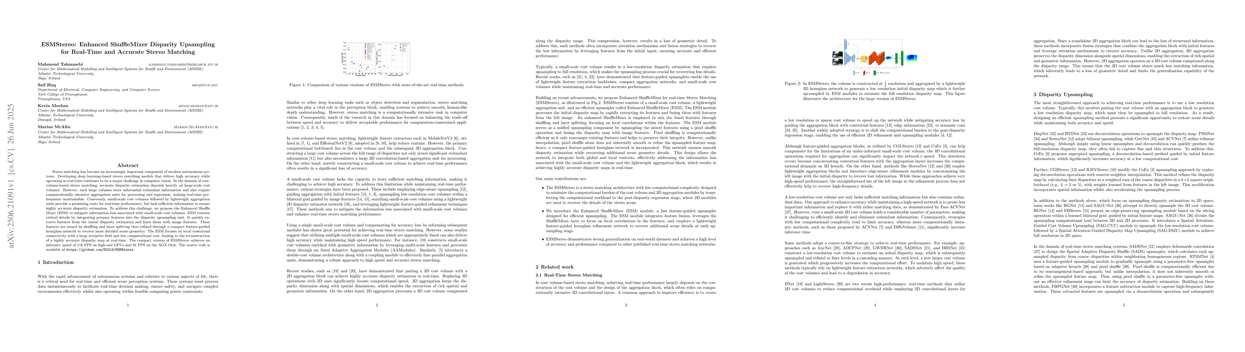 The paper proposes the Enhanced Shuffle Mixer (ESM) module integrated into a lightweight stereo matching network, utilizing small-scale cost volumes processed through a compact 3D aggregation network and feature fusion techniques for real-time disparity upsampling.