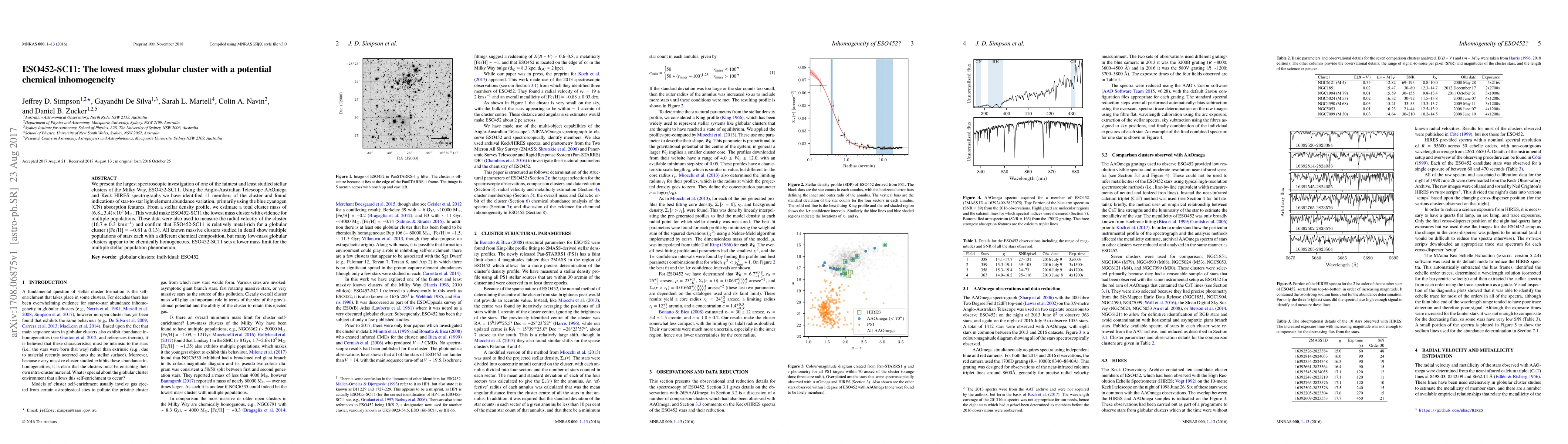 ESO452-SC11, a faint and low-mass globular cluster, shows evidence of star-to-star chemical inhomogeneity, challenging the notion that only massive clusters exhibit multiple stellar populations. This discovery suggests a lower mass limit for such chemical diversity.