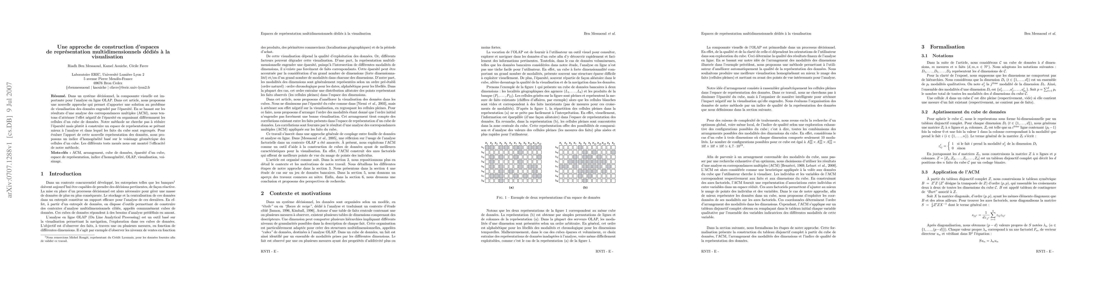 In decision-support systems, the visual component is important for On Line Analysis Processing (OLAP). In this paper, we propose a new approach that faces the visualization problem due to data sparsity. We use the results of a Multiple Correspondence Analysis (MCA) to reduce the negative effect of sparsity by organizing differently data cube cells. Our approach does not reduce sparsity, however it tries to build relevant representation spaces where facts are efficiently gathered. In order to evaluate our approach, we propose an homogeneity criterion based on geometric neighborhood of cells. The obtained experimental results have shown the efficiency of our method.