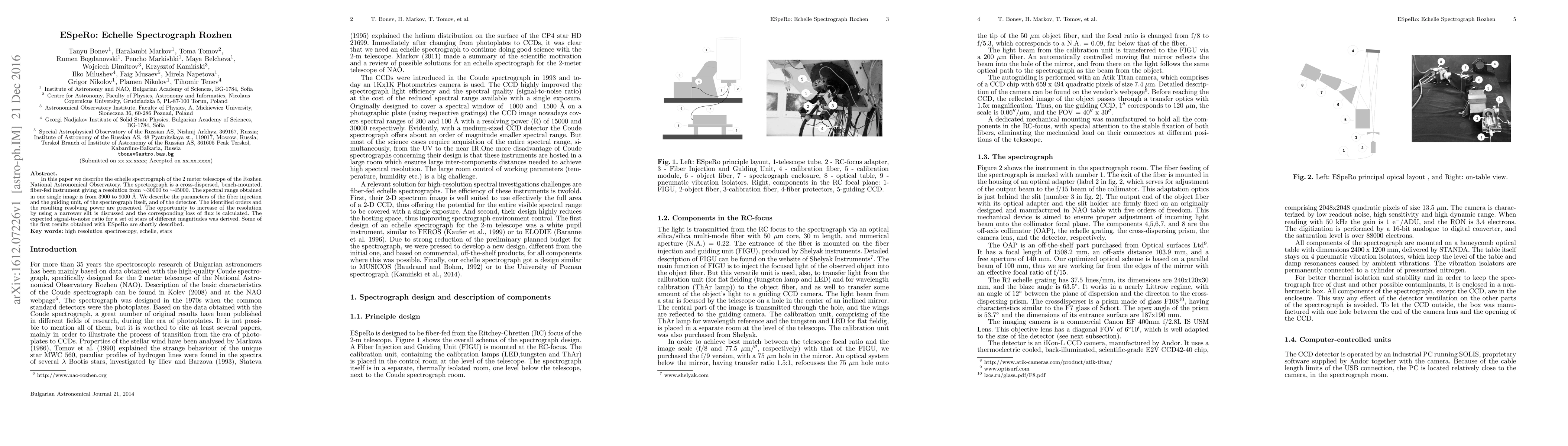 This paper details the echelle spectrograph, ESpeRo, of the 2-meter telescope at the Rozhen National Astronomical Observatory, which offers a resolution of 30000 to 45000 and a spectral range of 3900 to 9000 Å. The study also discusses the potential for increased resolution and the associated flux loss, along with initial results and expected signal-to-noise ratios for various star magnitudes.