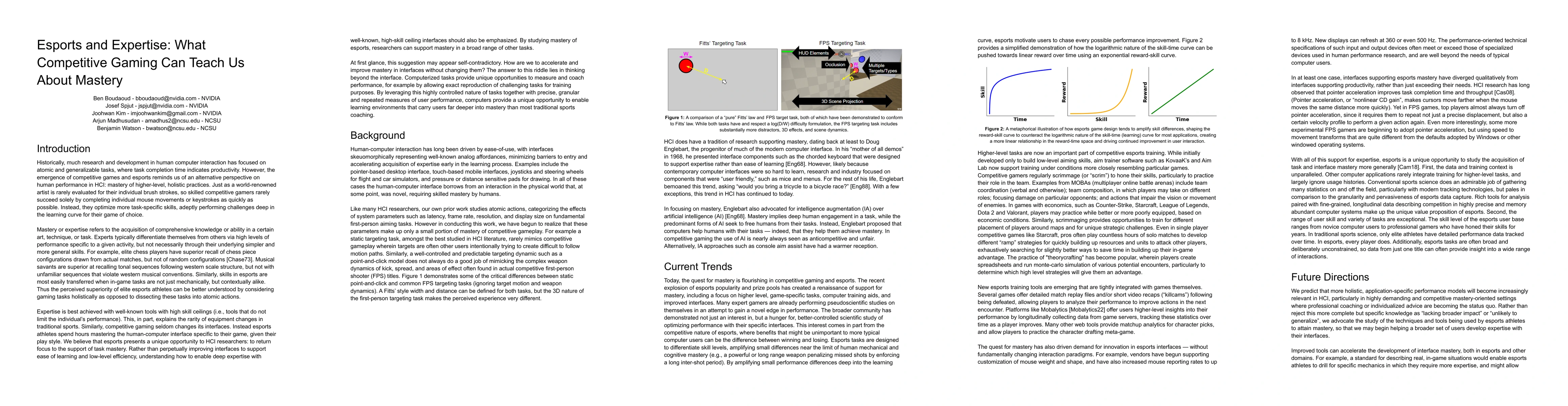Historically, much research and development in human computer interaction has focused on atomic and generalizable tasks, where task completion time indicates productivity. However, the emergence of competitive games and esports reminds us of an alternative perspective on human performance in HCI: mastery of higher-level, holistic practices. Just as a world-renowned artist is rarely evaluated for their individual brush strokes, so skilled competitive gamers rarely succeed solely by completing individual mouse movements or keystrokes as quickly as possible. Instead, they optimize more task-specific skills, adeptly performing challenges deep in the learning curve for their game of choice.