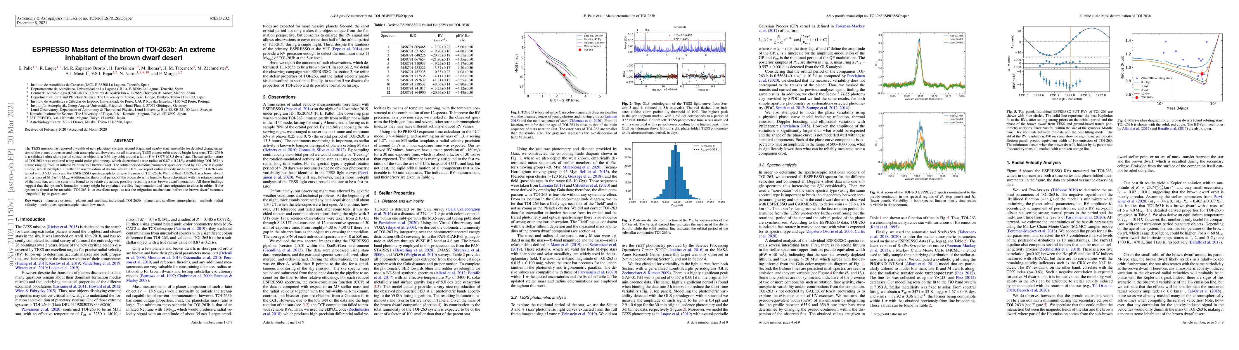 The ESPRESSO spectrograph determined the mass of TOI-263b, revealing it to be a brown dwarf with a mass of 61.6+-4.0 Mj, orbiting a faint M3.5 dwarf star in a synchronized, ultra-short period orbit. The system's formation likely involved disc fragmentation and migration, making it a potential test case for migration mechanisms.