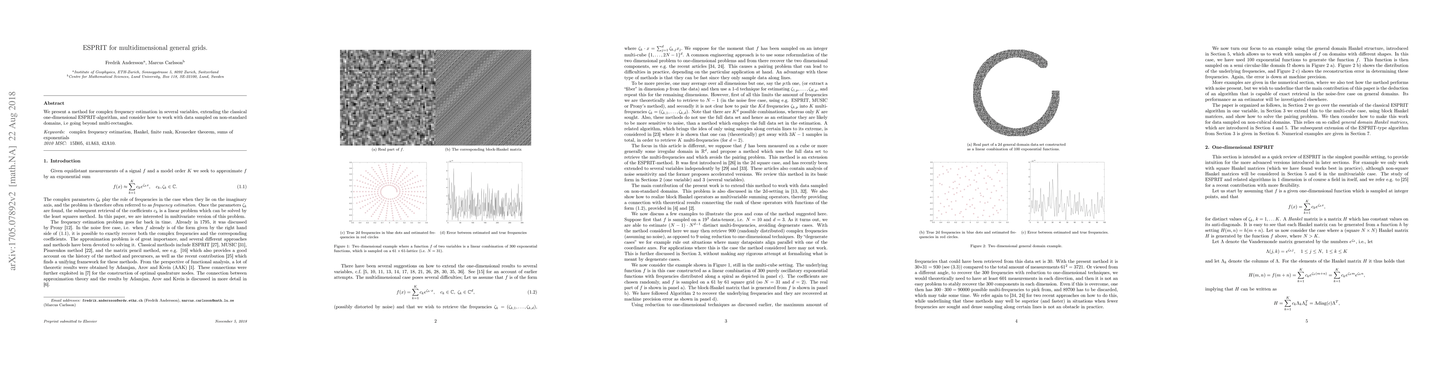 We present a new method for complex frequency estimation in several variables, extending the classical (1d) ESPRIT-algorithm. We also consider how to work with data sampled on non-standard domains (i.e going beyond multi-rectangles).