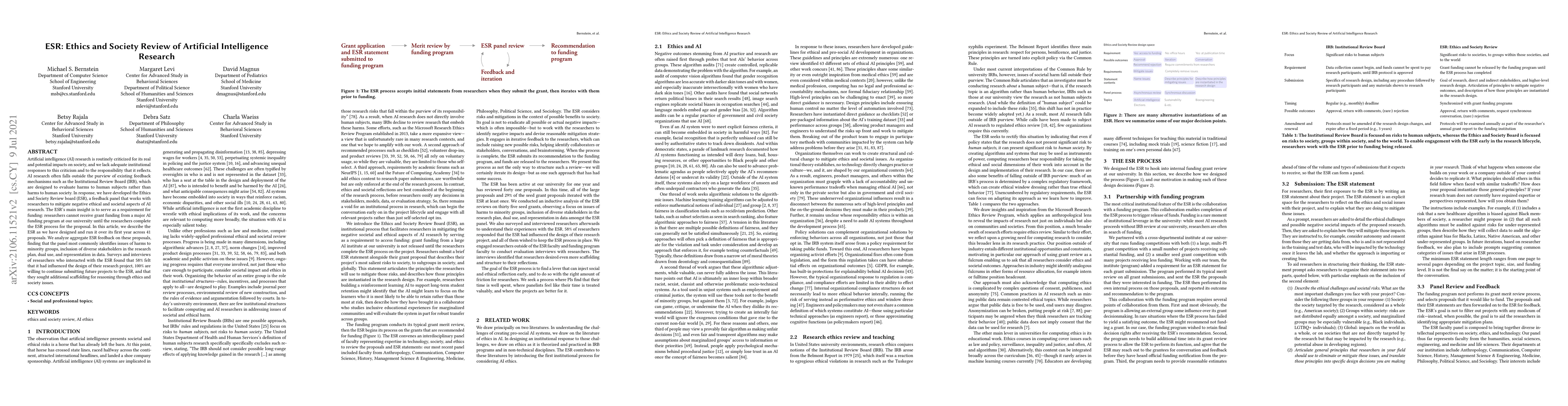 The paper introduces the Ethics and Society Review (ESR) board, a feedback mechanism designed to address the ethical and societal impacts of AI research, which often evades existing institutional review processes. The ESR requires researchers to complete its review for funding approval, and analysis shows it commonly identifies issues related to societal harm, diversity, dual use, and data representation. Researchers report positive feedback, indicating the ESR influences project design and future submissions.