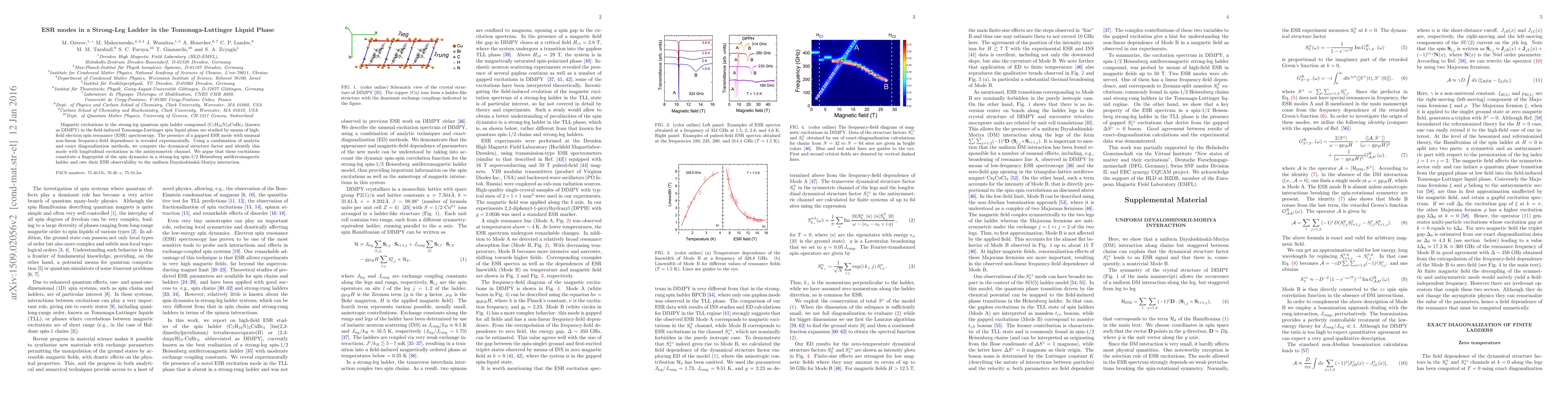Magnetic excitations in the strong-leg quantum spin ladder compound (C$_7$H$_{10}$N)$_2$CuBr$_4$ (known as DIMPY) in the field-induced Tomonaga-Luttinger spin liquid phase are studied by means of high-field electron spin resonance (ESR) spectroscopy. The presence of a gapped ESR mode with unusual non-linear frequency-field dependence is revealed experimentally. Using a combination of analytic and exact diagonalization methods, we compute the dynamical structure factor and identify this mode with longitudinal excitations in the antisymmetric channel. We argue that these excitations constitute a fingerprint of the spin dynamics in a strong-leg spin-1/2 Heisenberg antiferromagnetic ladder and owe its ESR observability to the uniform Dzyaloshinskii-Moriya interaction.