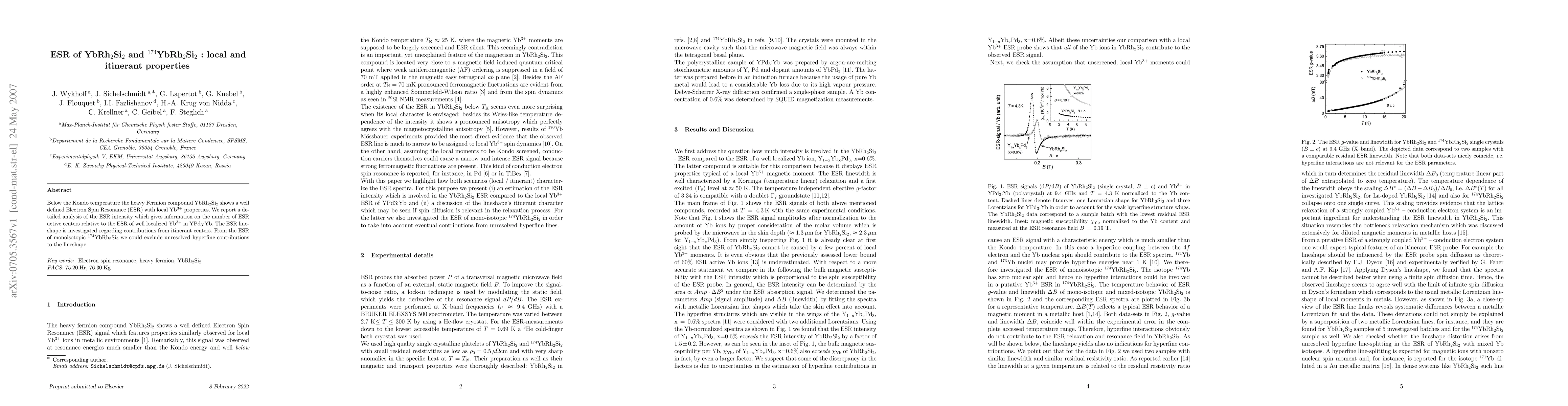Below the Kondo temperature the heavy Fermion compound YbRh$_{2}$Si$_{2}$ shows a well defined Electron Spin Resonance (ESR) with local Yb$^{3+}$ properties. We report a detailed analysis of the ESR intensity which gives information on the number of ESR active centers relative to the ESR of well localized Yb$^{3+}$ in YPd$_3$:Yb. The ESR lineshape is investigated regarding contributions from itinerant centers. From the ESR of monoisotopic $^{174}$YbRh$_{2}$Si$_{2}$ we could exclude unresolved hyperfine contributions to the lineshape.