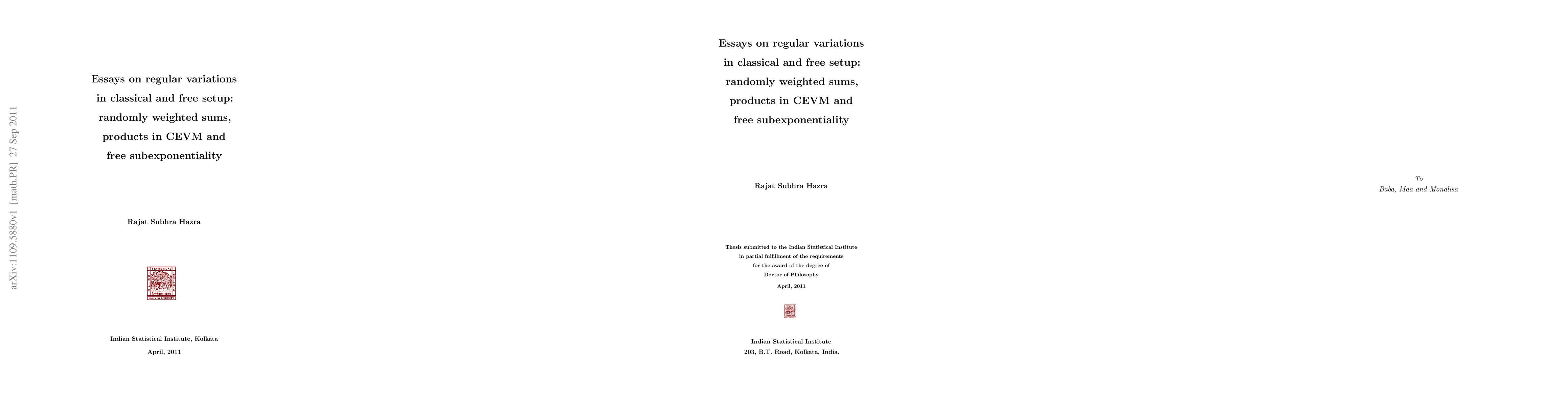 This is a thesis on some applications of regularly varying functions. Three problems are considered. The first problem is about the randomly weighted sums, the second is on the behavior of the product under conditional extreme value model and the final problem studies heavy tailed measures under free convolution. The first chapter gives a brief overview of the heavy tailed distributions.