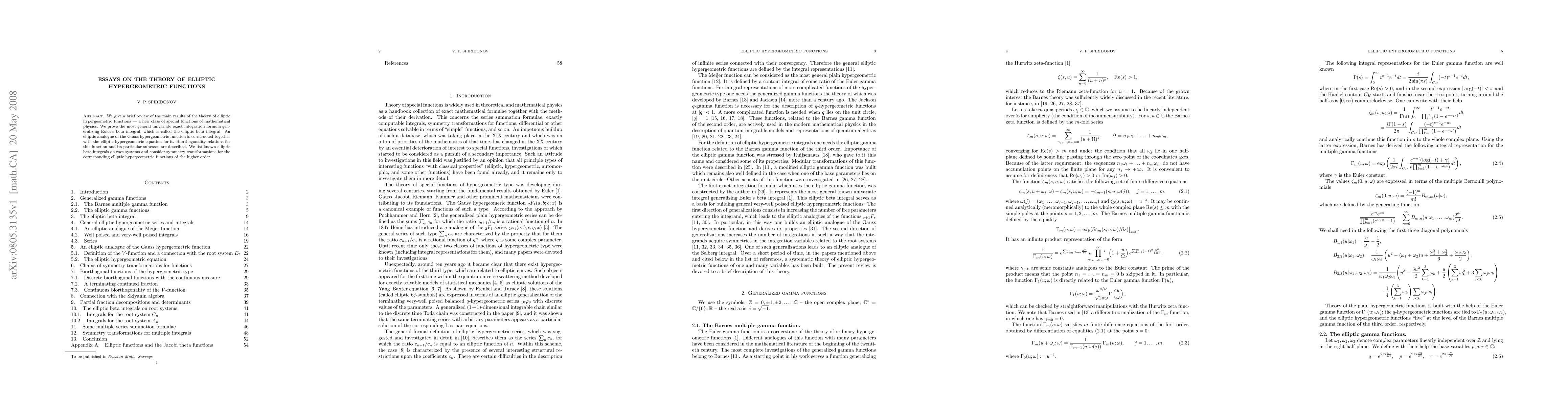 This paper reviews the theory of elliptic hypergeometric functions, introducing a new class of special functions in mathematical physics. It presents a generalized elliptic beta integral and constructs an elliptic analogue of the Gauss hypergeometric function, along with its associated hypergeometric equation and biorthogonality relations.