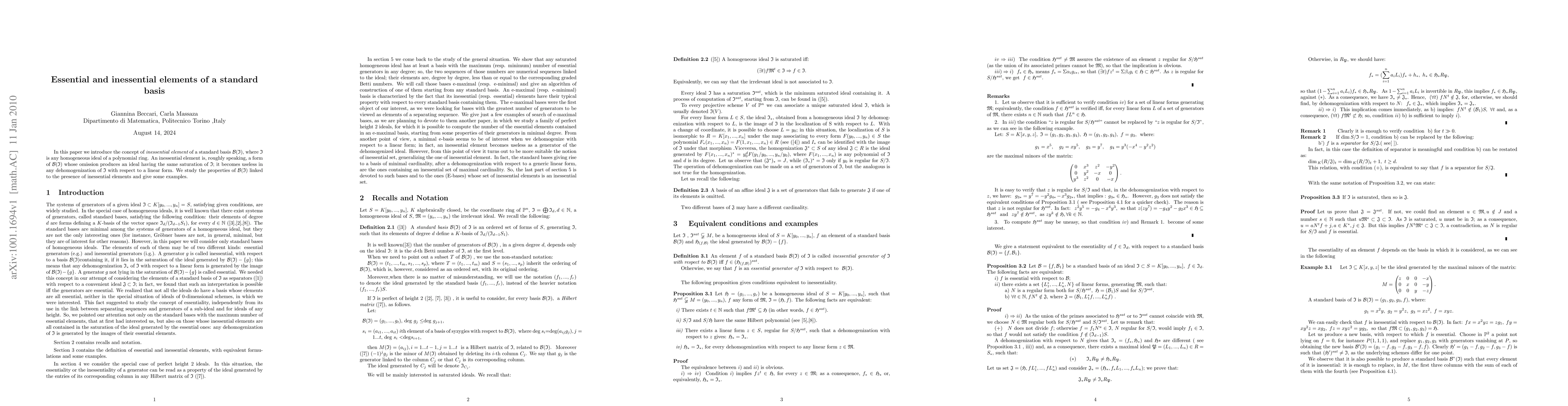 In this paper we introduce the concept of inessential element of a standard basis of I, where I is any homogeneous ideal of a polynomial ring. An inessential element is, roughly speaking, a form of the basis whose omission produces an ideal having the same saturation of I; it becomes useless in any dehomogenization of I with respect to a linear form. We study the properties of the basis linked to the presence of inessential elements and give some examples.