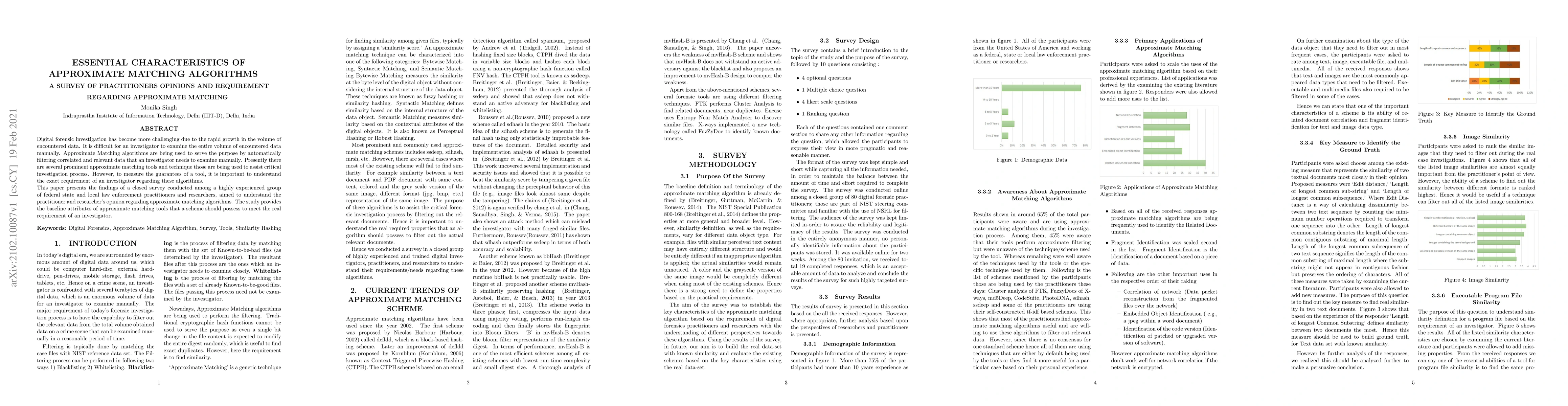 Digital forensic investigation has become more challenging due to the rapid growth in the volume of encountered data. It is difficult for an investigator to examine the entire volume of encountered data manually. Approximate Matching algorithms are being used to serve the purpose by automatically filtering correlated and relevant data that an investigator needs to examine manually. Presently there are several prominent approximate matching tools and technique those are being used to assist critical investigation process. However, to measure the guarantees of a tool, it is important to understand the exact requirement of an investigator regarding these algorithms. This paper presents the findings of a closed survey conducted among a highly experienced group of federal state and local law enforcement practitioners and researchers, aimed to understand the practitioner and researcher's opinion regarding approximate matching algorithms. The study provides the baseline attributes of approximate matching tools that a scheme should possess to meet the real requirement of an investigator.