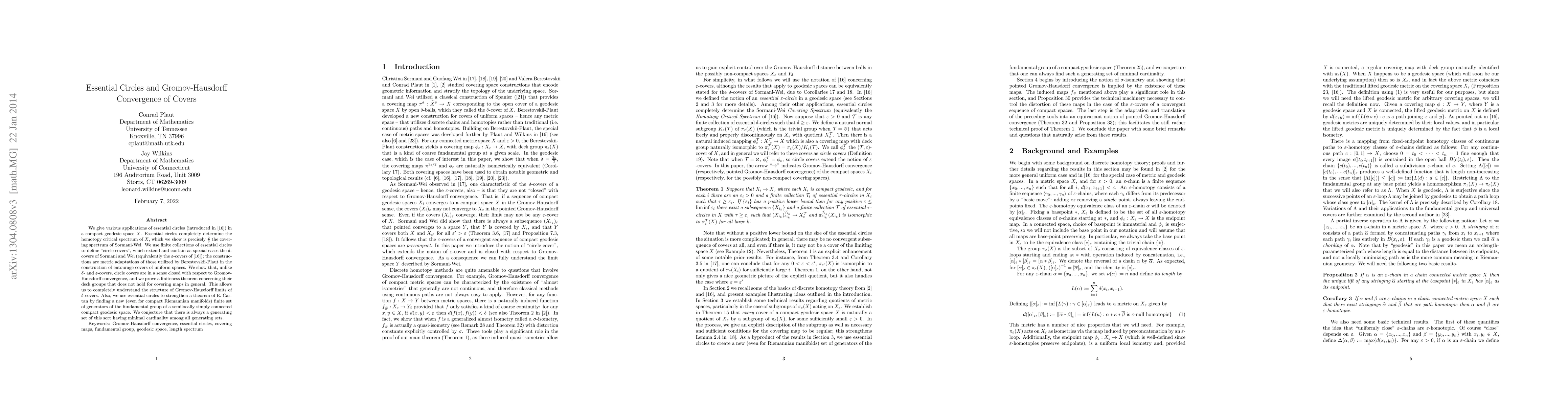We give various applications of essential circles (introduced in an earlier paper by the authors) in a compact geodesic space X. Essential circles completely determine the homotopy critical spectrum of X, which we show is precisely 2/3 the covering spectrum of Sormani-Wei. We use finite collections of essential circles to define "circle covers," which extend and contain as special cases the delta-covers of Sormani and Wei (equivalently the epsilon-covers of the authors); the constructions are metric adaptations of those utilized by Berestovskii-Plaut in the construction of entourage covers of uniform spaces. We show that, unlike delta- and epsilon-covers, circle covers are in a sense closed with respect to Gromov-Hausdorff convergence, and we prove a finiteness theorem concerning their deck groups that does not hold for covering maps in general. This allows us to completely understand the structure of Gromov-Hausdorff limits of delta-covers. Also, we use essential circles to strengthen a theorem of E. Cartan by finding a new (even for compact Riemannian manifolds) finite set of generators of the fundamental group of a semilocally simply connected compact geodesic space. We conjecture that there is always a generating set of this sort having minimal cardinality among all generating sets.