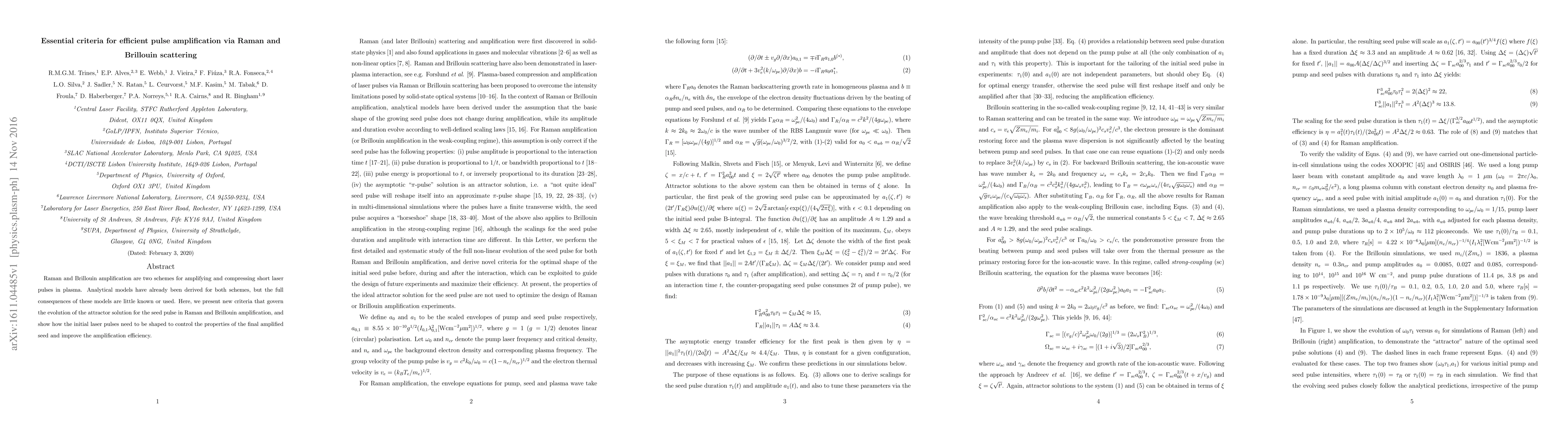 This paper introduces new criteria for optimizing pulse amplification via Raman and Brillouin scattering in plasma, detailing how initial pulse shaping can enhance amplification efficiency and control the properties of the final amplified pulse.
