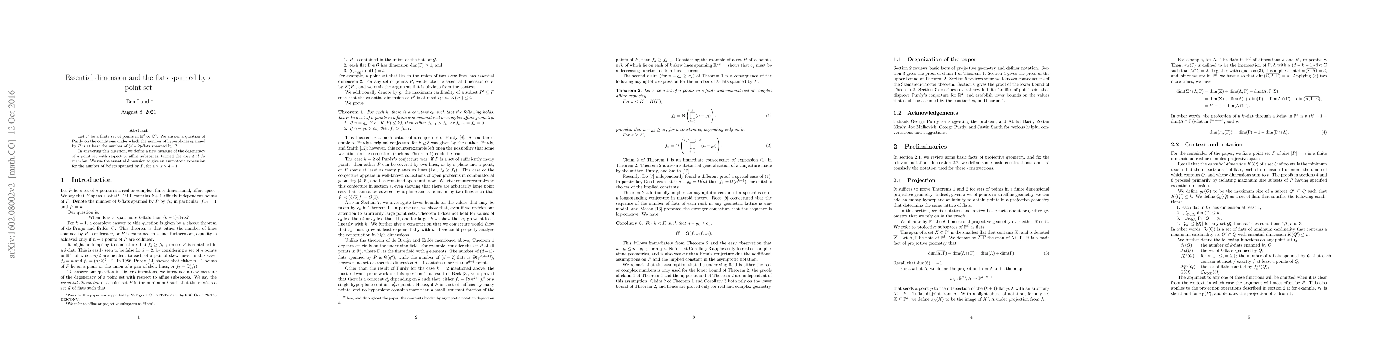 This paper defines the "essential dimension" to measure the degeneracy of a finite point set in $\mathbb{R}^d$ or $\mathbb{C}^d$ with respect to affine subspaces. It provides an asymptotic expression for the number of $k$-flats spanned by the set, addressing Purdy's question on the conditions for hyperplanes outnumbering $(d-2)$-flats.