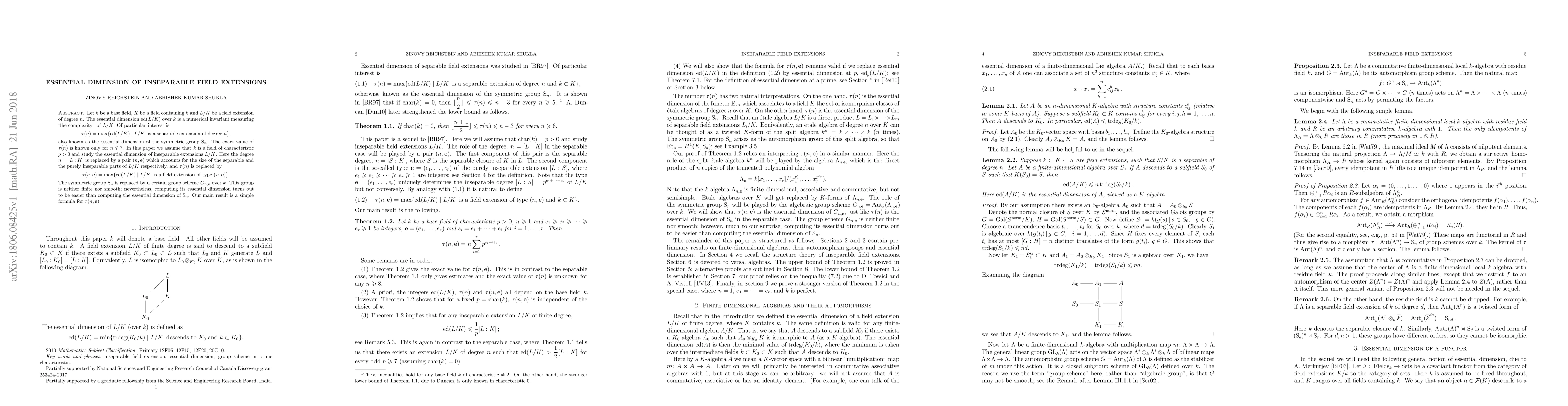 The paper studies the essential dimension of inseparable field extensions, a measure of complexity in field extensions, and provides a simple formula for its value.