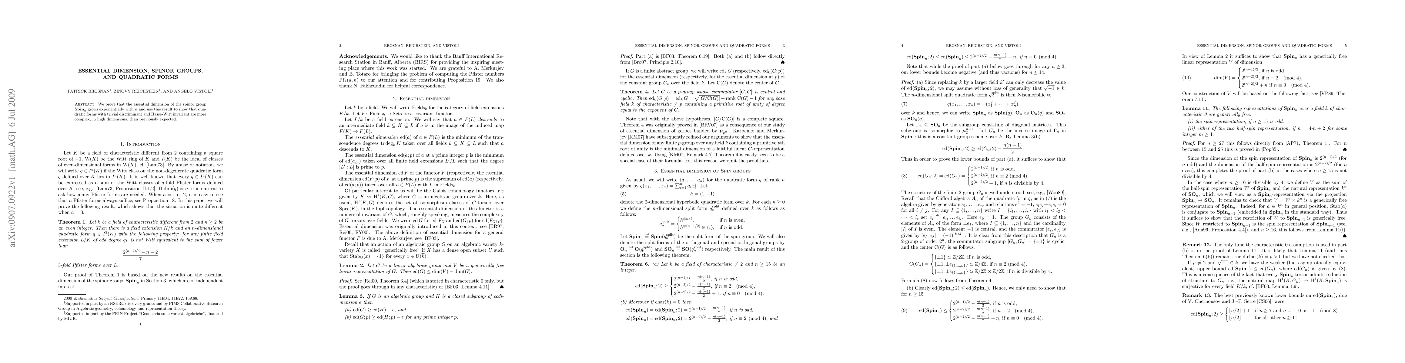 This paper establishes that the essential dimension of the spinor group Spin_n increases exponentially with n, providing a precise formula for non-multiples of 4. It further demonstrates that the number of 3-fold Pfister forms needed to represent a general quadratic form of rank n grows exponentially with n.