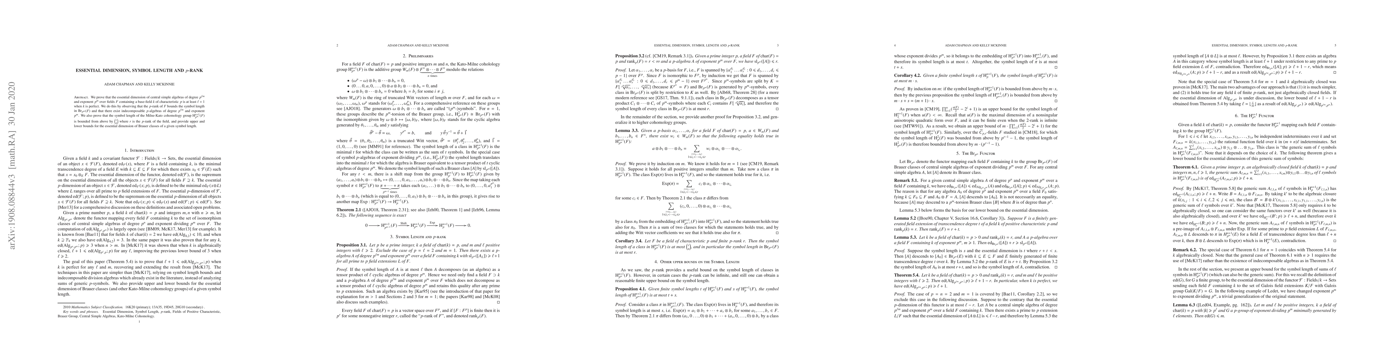 Research proves central simple algebras of degree $p^{ m{lm}}$ have essential dimension at least $ m{l}+1$ when fields contain a perfect base-field of characteristic $p$.