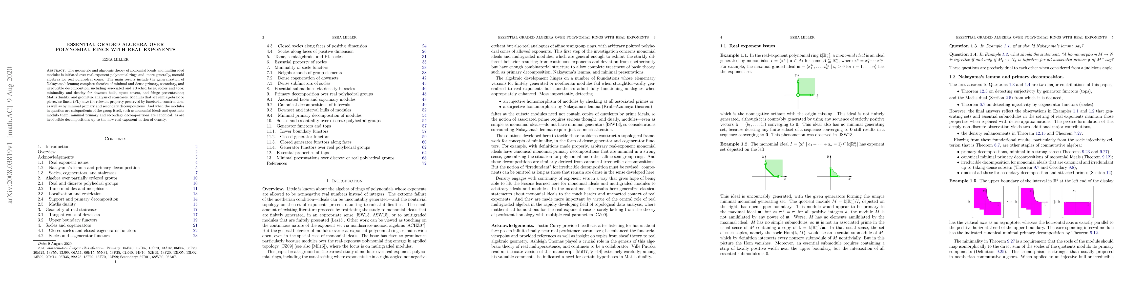 The geometric and algebraic theory of monomial ideals and multigraded modules is initiated over real-exponent polynomial rings and, more generally, monoid algebras for real polyhedral cones. The main results include the generalization of Nakayama's lemma; complete theories of minimal and dense primary, secondary, and irreducible decomposition, including associated and attached faces; socles and tops; minimality and density for downset hulls, upset covers, and fringe presentations; Matlis duality; and geometric analysis of staircases. Modules that are semialgebraic or piecewise-linear (PL) have the relevant property preserved by functorial constructions as well as by minimal primary and secondary decompositions. And when the modules in question are subquotients of the group itself, such as monomial ideals and quotients modulo them, minimal primary and secondary decompositions are canonical, as are irreducible decompositions up to the new real-exponent notion of density.