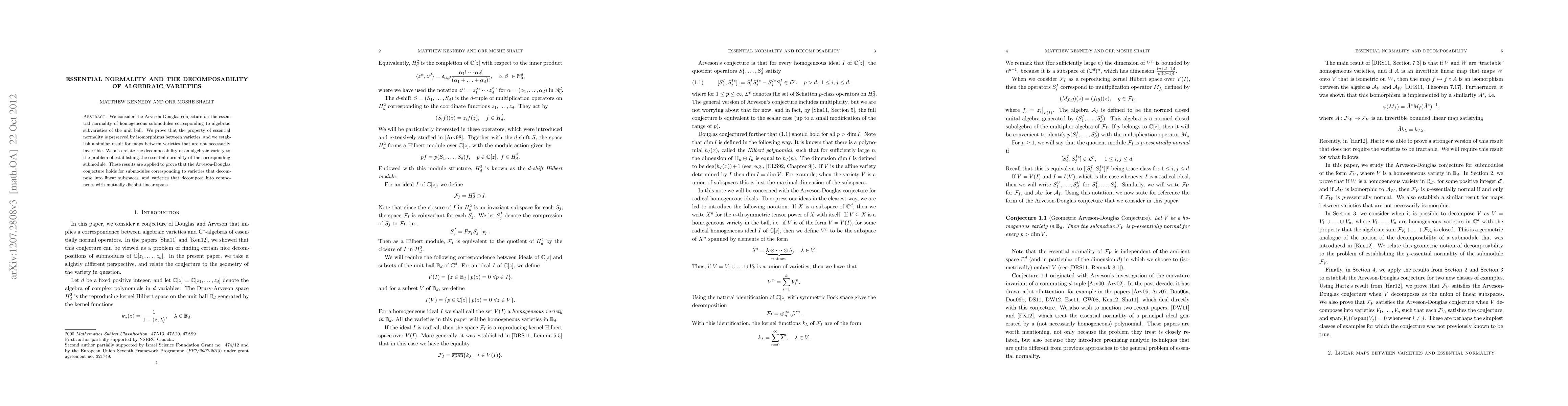 We consider the Arveson-Douglas conjecture on the essential normality of homogeneous submodules corresponding to algebraic subvarieties of the unit ball. We prove that the property of essential normality is preserved by isomorphisms between varieties, and we establish a similar result for maps between varieties that are not necessarily invertible. We also relate the decomposability of an algebraic variety to the problem of establishing the essential normality of the corresponding submodule. These results are applied to prove that the Arveson-Douglas conjecture holds for submodules corresponding to varieties that decompose into linear subspaces, and varieties that decompose into components with mutually disjoint linear spans.