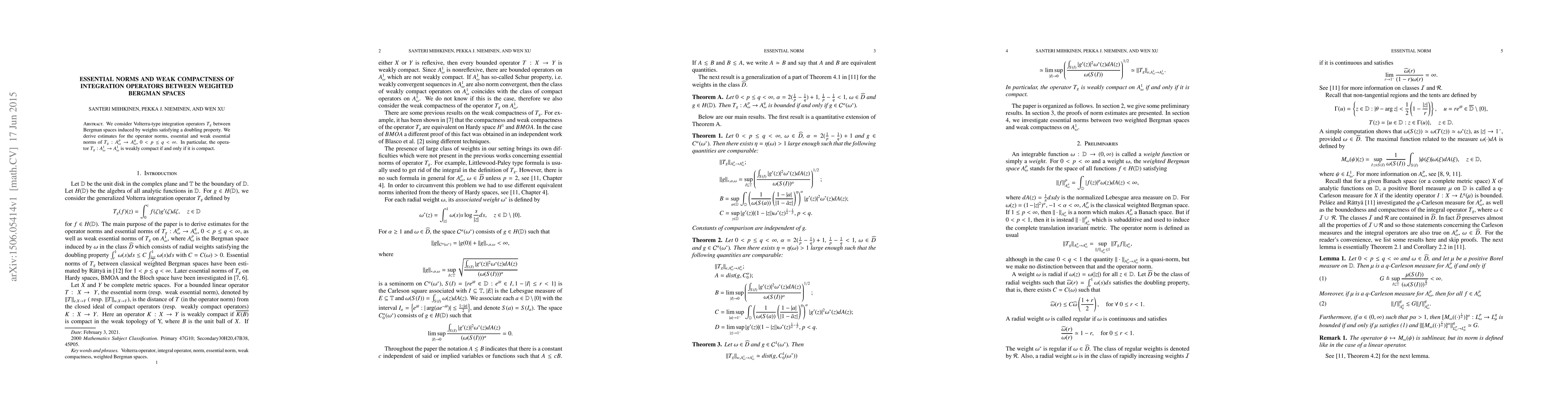 Summary: This paper investigates Volterra-type integration operators $T_g$ between weighted Bergman spaces $A_\omega^p$ and $A_\omega^q$, deriving estimates for their norms and establishing conditions for weak compactness, specifically showing that $T_g: A_\omega^1 \to A_\omega^1$ is weakly compact if and only if it is compact.