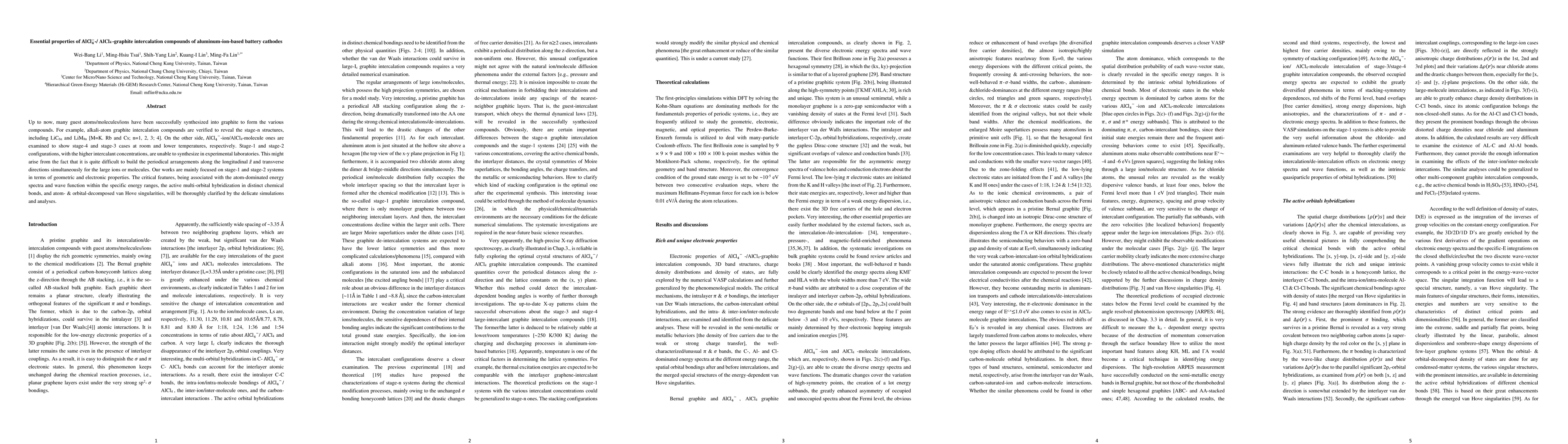 Researchers investigated AlCl4-related graphite intercalation compounds for battery cathodes, revealing key features such as stage-1 and stage-2 configurations with active multi-orbital hybridization.