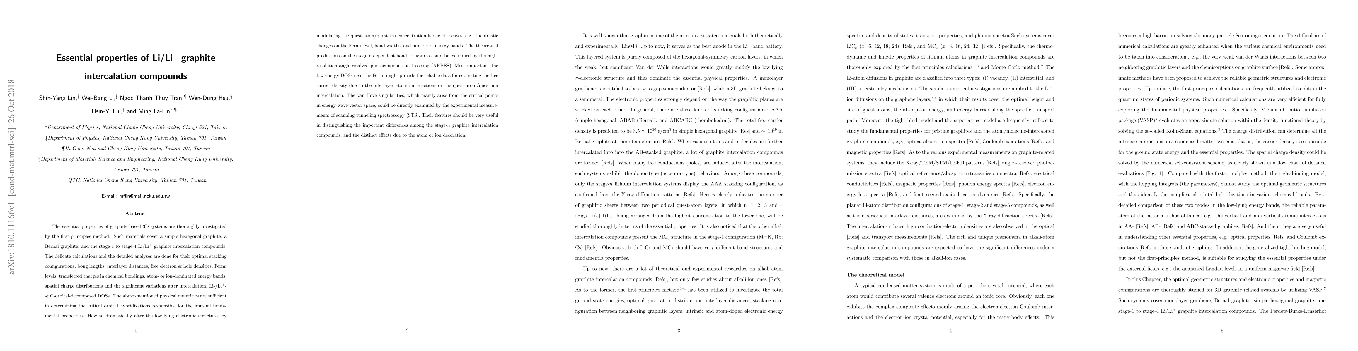 The research provides a detailed examination of the electronic structure and properties of Li/Li+ graphite intercalation compounds, offering new insights into how intercalation affects their low-lying electronic structures and charge distributions.