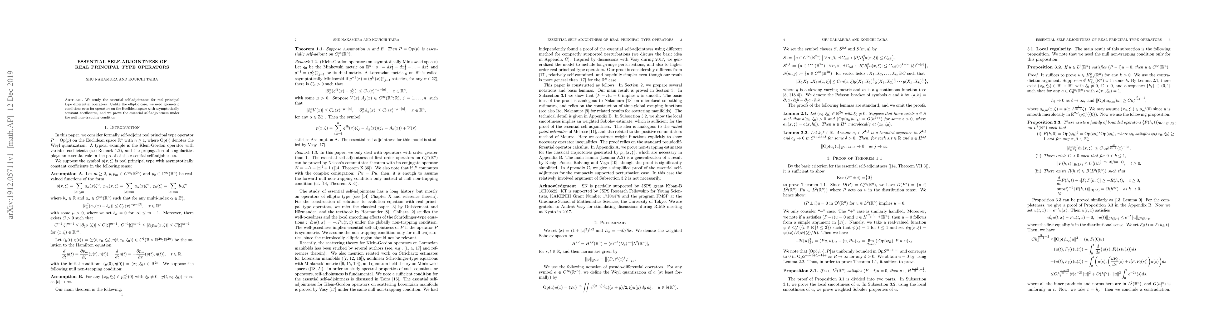 Summary: This paper investigates the essential self-adjointness of real principal type differential operators, demonstrating that unlike elliptic operators, geometric conditions are necessary even in Euclidean space, and it proves essential self-adjointness under the null non-trapping condition.