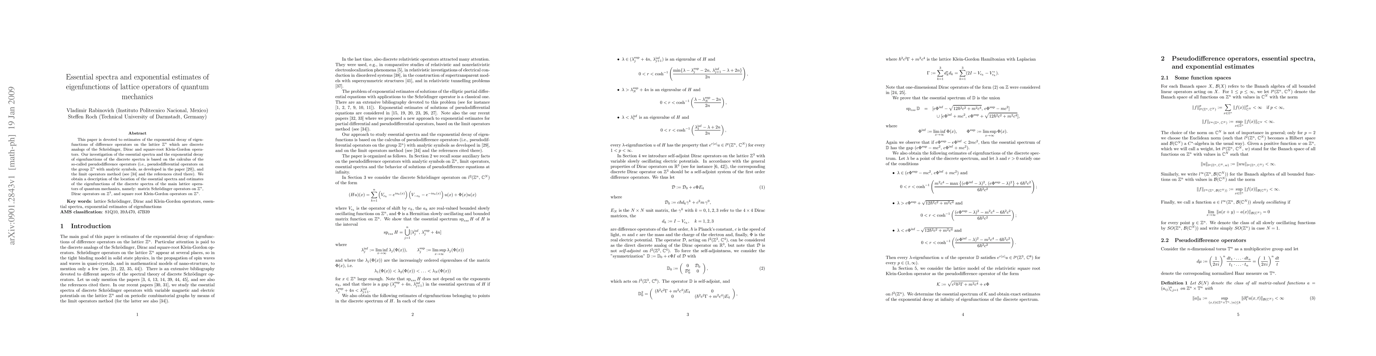 This paper estimates the decay of eigenfunctions for lattice operators in quantum mechanics using pseudodifference operators and the limit operators method, providing a description of essential spectra and exponential decay rates.