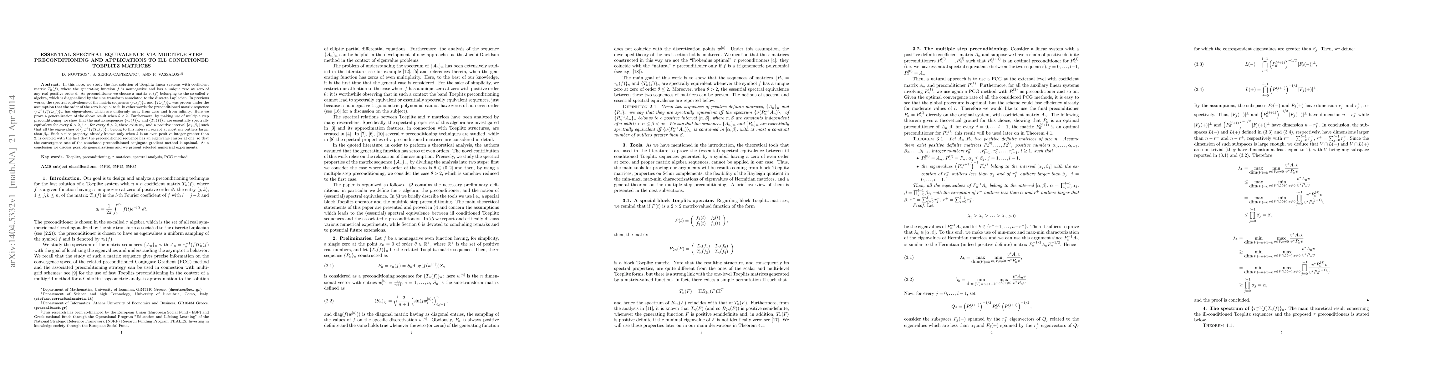 In this note, we study the fast solution of Toeplitz linear systems with coefficient matrix $T_n(f)$, where the generating function $f$ is nonnegative and has a unique zero at zero of any real positive order $\theta$. As preconditioner we choose a matrix ${\tau}_n(f)$ belonging to the so-called $\tau$ algebra, which is diagonalized by the sine transform associated to the discrete Laplacian. In previous works, the spectral equivalence of the matrix sequences $\{{\tau}_n(f)\}_n $ and $\{T_n(f) \}_n$ was proven under the assumption that the order of the zero is equal to $2$: in other words the preconditioned matrix sequence $\{{\tau}^{-1}_n(f)T_n(f) \}_n $ has eigenvalues, which are uniformly away from zero and from infinity. Here we prove a generalization of the above result when $\theta<2$. Furthermore, by making use of multiple step preconditioning, we show that the matrix sequences $\{{\tau}_n(f)\}_n $ and $\{T_n(f) \}_n$ are essentially spectrally equivalent for every $\theta>2$, i.e., for every $\theta>2$, there exist $m_\theta$ and a positive interval $[\alpha_\theta,\beta_\theta]$ such that all the eigenvalues of $\{{\tau}^{-1}_n(f)T_n(f) \}_n $ belong to this interval, except at most $m_\theta$ outliers larger than $\beta_\theta$. Such a nice property, already known only when $\theta$ is an even positive integer greater than 2, is coupled with the fact that the preconditioned sequence has an eigenvalue cluster at one, so that the convergence rate of the associated preconditioned conjugate gradient method is optimal. As a conclusion we discuss possible generalizations and we present selected numerical experiments.
