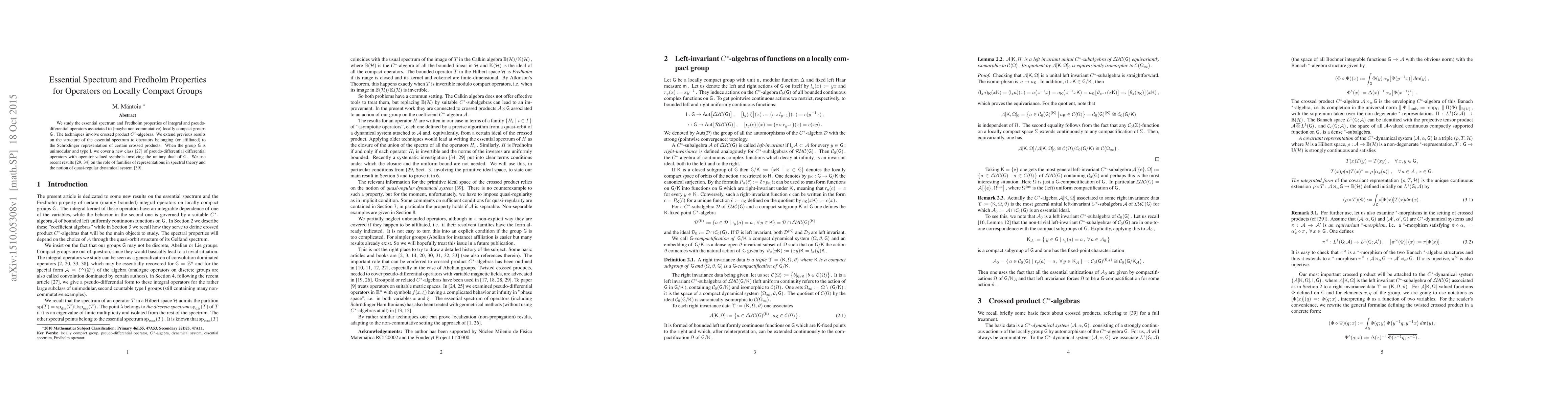 The paper investigates the essential spectrum and Fredholm properties of integral and pseudodifferential operators on locally compact groups, employing crossed product C*-algebras and extending previous results to new classes of operators, particularly when the group is unimodular and type I. It utilizes recent advances in spectral theory and quasi-regular dynamical systems.
