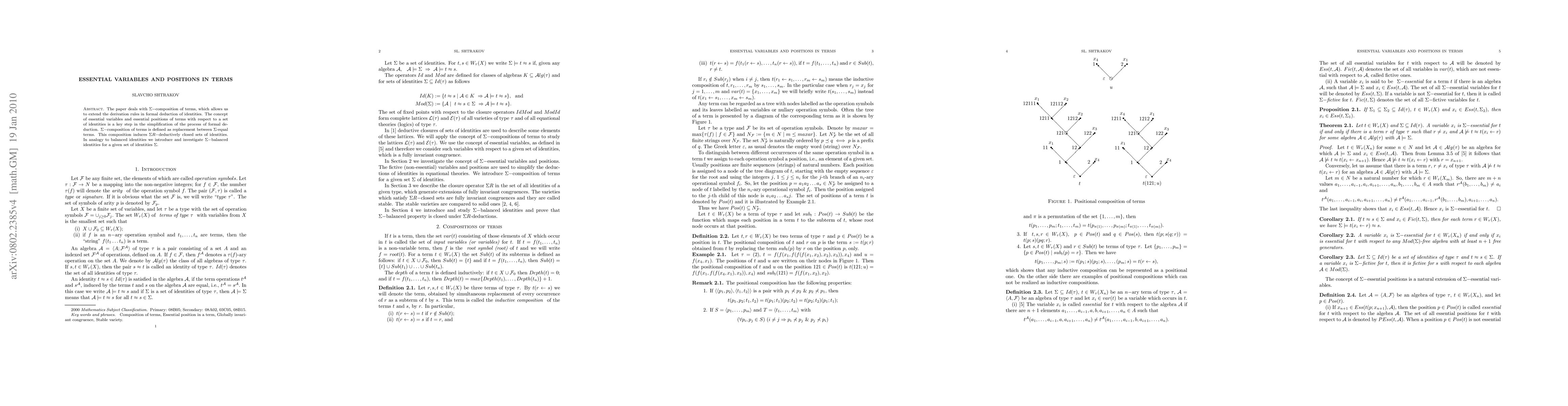 The paper explores $\Sigma-$composition of terms to extend formal deduction rules, emphasizing essential variables and positions for simplifying the deduction process. It introduces $\Sigma-$balanced identities analogous to balanced identities, aiding in the formation of $\Sigma R-$deductively closed sets of identities.