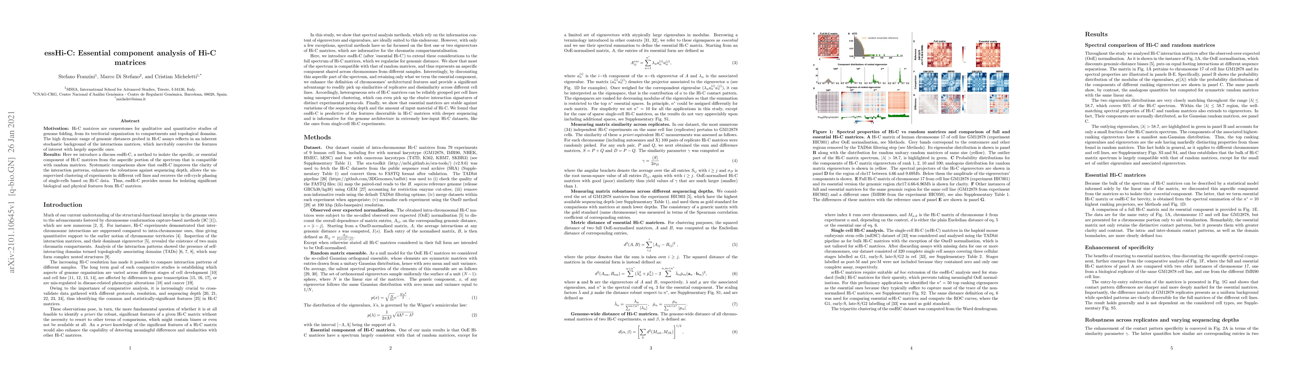 The research introduces essHi-C, a method to isolate the essential component of Hi-C matrices from the aspecific portion compatible with random matrices by spectral analysis and comparison.