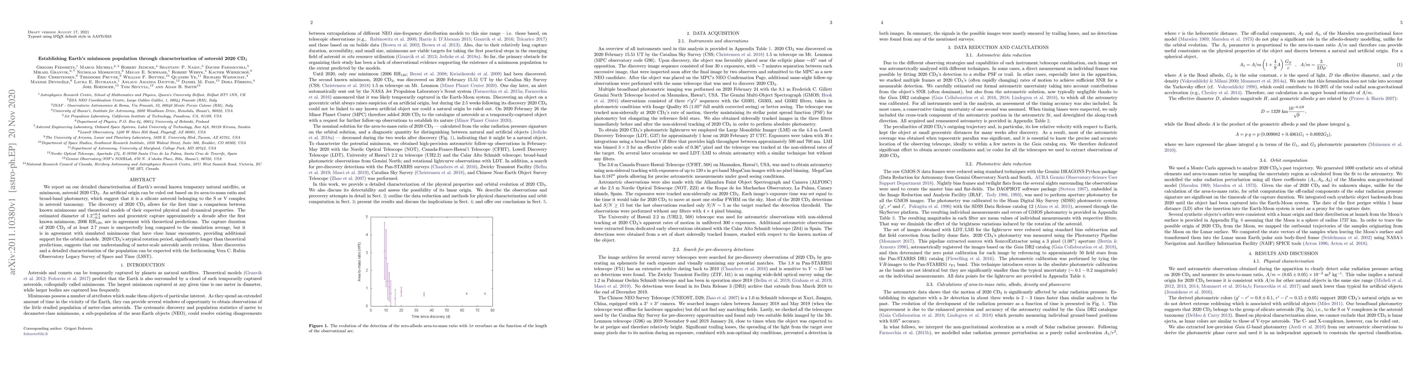 Astronomers characterized asteroid 2020 CD3, Earth's second known minimoon, finding it has a diameter of 1.2m and geocentric capture approximately a decade after the first known minimoon, supporting theoretical predictions but revealing an atypical rotation period that suggests revision to meter-scale asteroid models.