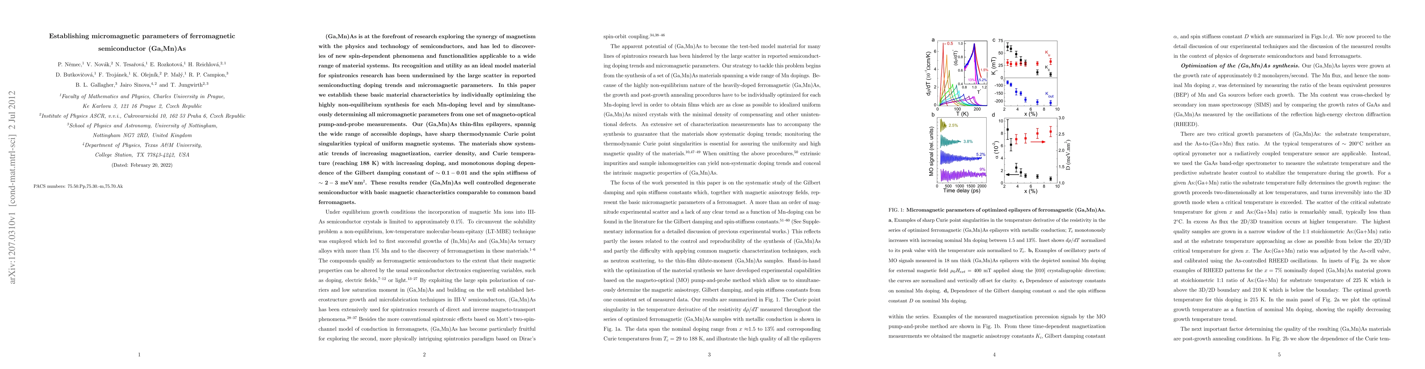 This paper establishes micromagnetic parameters for (Ga,Mn)As by optimizing synthesis for different Mn-doping levels and determining these parameters from magneto-optical measurements, revealing systematic trends in magnetization, carrier density, and Curie temperature with doping. The results characterize (Ga,Mn)As as a well-controlled degenerate semiconductor with magnetic properties akin to conventional band ferromagnets.