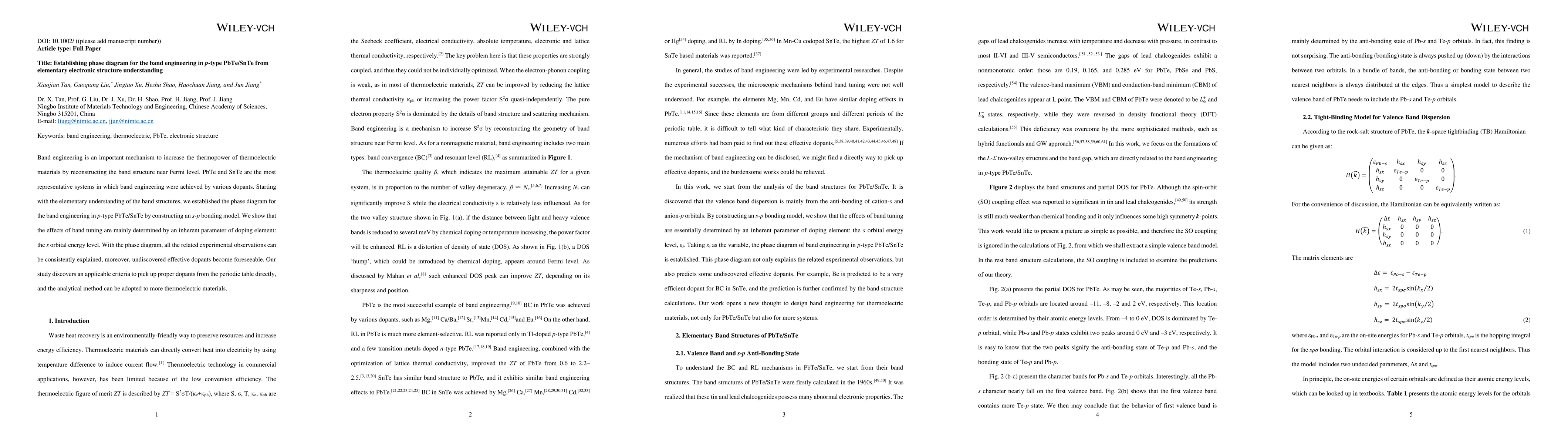 This paper establishes a phase diagram for band engineering in p-type PbTe/SnTe systems by understanding the electronic structure, revealing that band tuning effects are primarily determined by the s orbital energy level of dopants. The proposed method can predict effective dopants and is applicable to other thermoelectric materials.