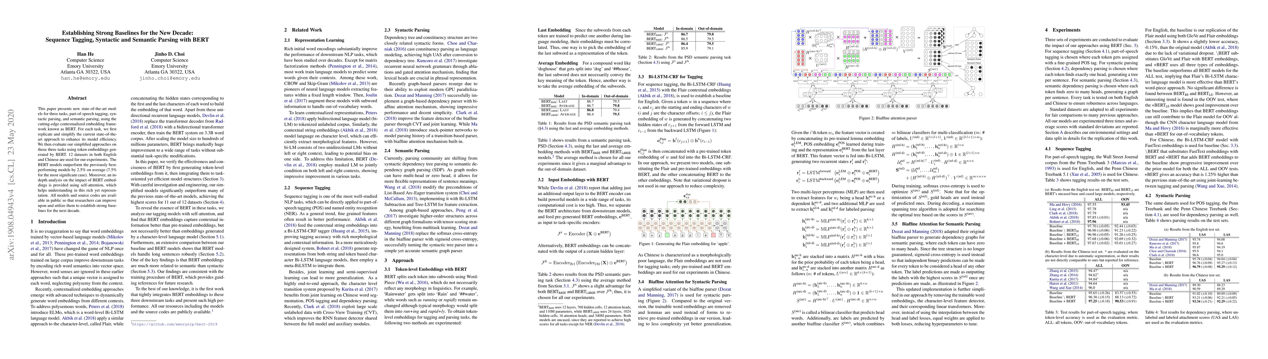 This paper introduces advanced BERT-based models for part-of-speech tagging, syntactic parsing, and semantic parsing, achieving state-of-the-art performance across 12 datasets. The authors simplify current models to enhance efficiency while maintaining superior results, with an average improvement of 2.5%.