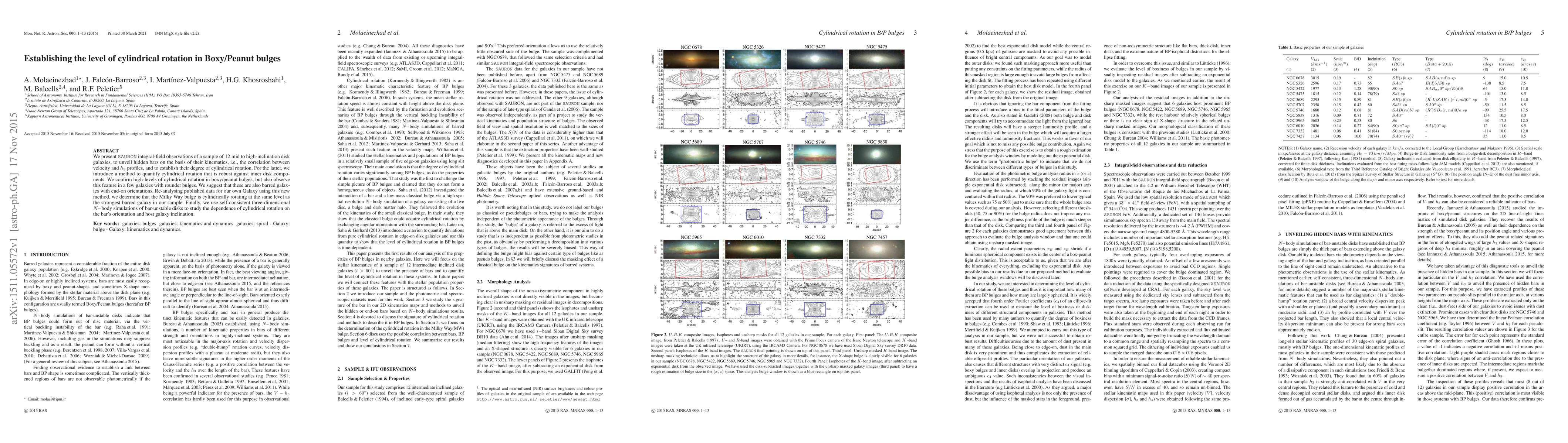 This paper presents a method to quantify cylindrical rotation in boxy/peanut bulges using SAURON observations, confirming high levels of such rotation in these bulges and suggesting that similar features in rounder bulges may also be barred galaxies viewed end-on. The Milky Way's bulge is found to exhibit cylindrical rotation comparable to the strongest barred galaxies in the sample.