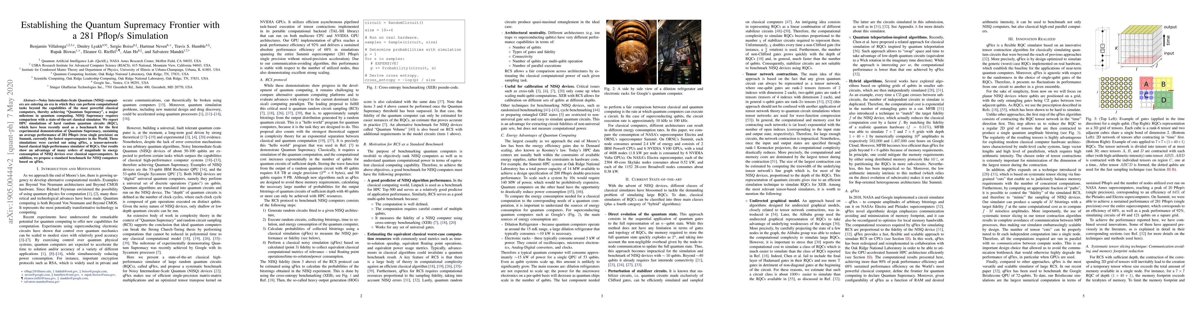 This paper demonstrates quantum supremacy using a 281 Pflop/s simulation of hard random quantum circuits on the world's fastest supercomputer, Summit, with a classical simulator called qFlex. The study highlights the significant energy efficiency advantage of Noisy Intermediate-Scale Quantum computers over classical supercomputers.