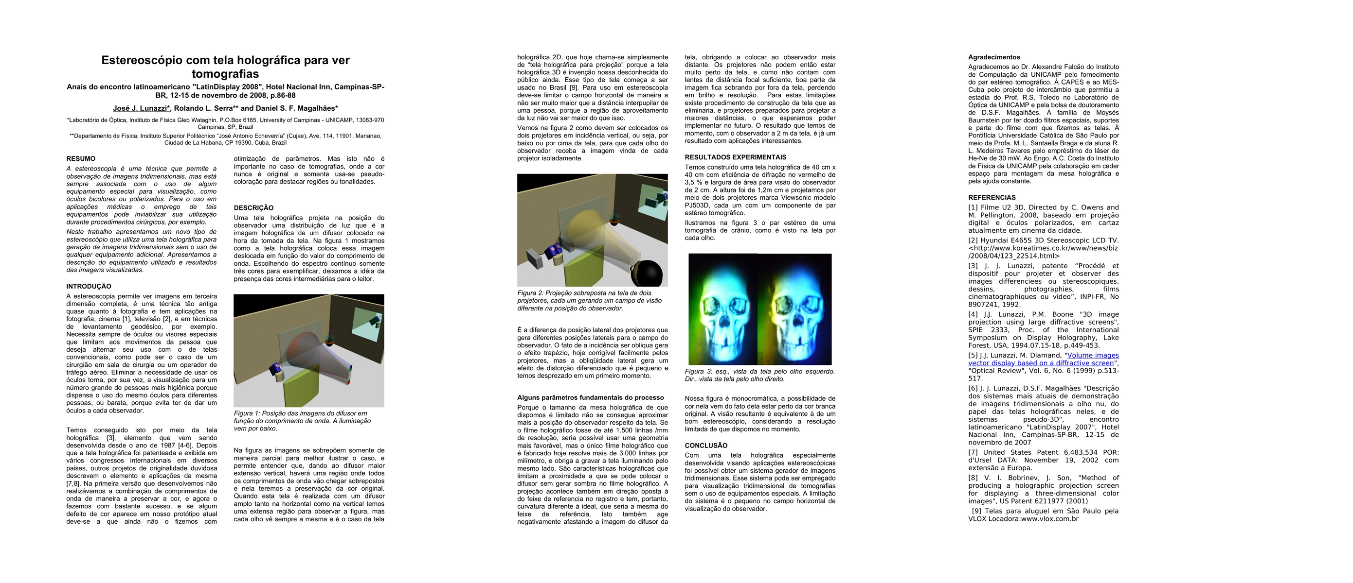 A estereoscopia eh uma tecnica que permite a observacao de imagens tridimensionais, mas estah sempre associada com o uso de algum equipamento especial para visualizacao, como oculos bicolores ou polarizados. Para o uso em aplicacoes medicas o emprego de tais equipamentos pode inviabilizar sua utilizacao durante procedimentos cirurgicos, por exemplo. Neste trabalho apresentamos um novo tipo de estereoscopio que utiliza uma tela holografica para geracao de imagens tridimensionais sem o uso de qualquer equipamento adicional. Apresentamos a descricao do equipamento utilizado e resultados das imagens visualizadas.
