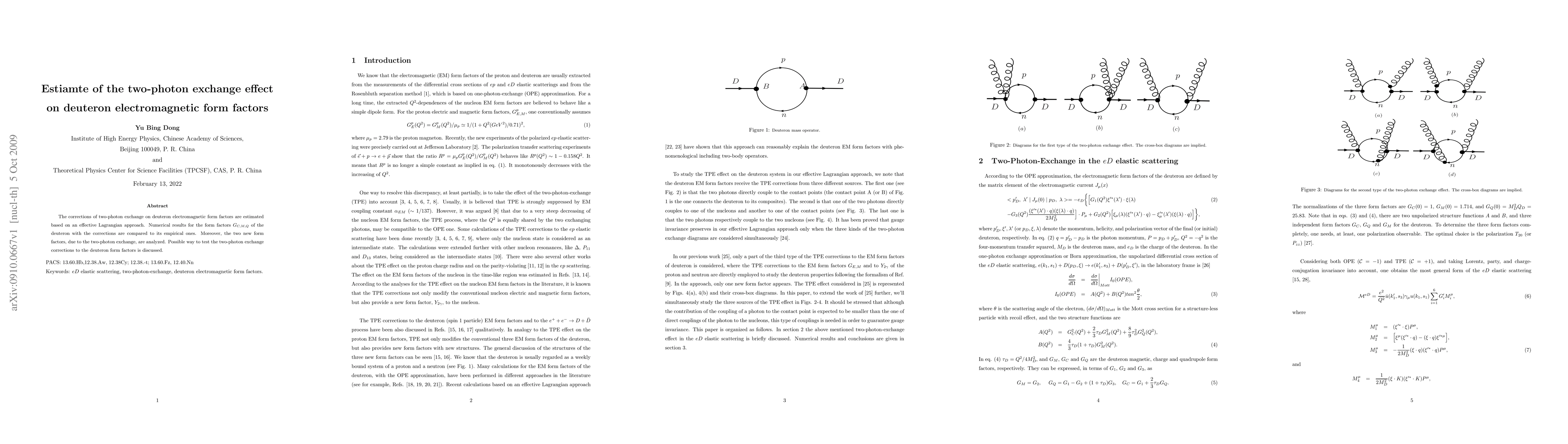 This paper estimates the two-photon exchange effect on deuteron electromagnetic form factors using an effective Lagrangian approach, comparing the corrected theoretical results to empirical data and analyzing new form factors arising from this effect. It also discusses potential experimental methods for testing these corrections.