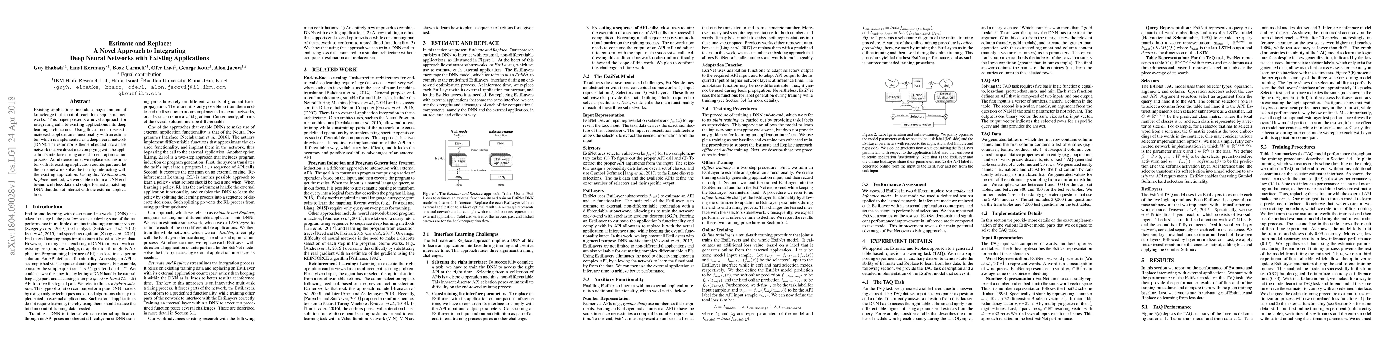 Existing applications include a huge amount of knowledge that is out of reach for deep neural networks. This paper presents a novel approach for integrating calls to existing applications into deep learning architectures. Using this approach, we estimate each application's functionality with an estimator, which is implemented as a deep neural network (DNN). The estimator is then embedded into a base network that we direct into complying with the application's interface during an end-to-end optimization process. At inference time, we replace each estimator with its existing application counterpart and let the base network solve the task by interacting with the existing application. Using this 'Estimate and Replace' method, we were able to train a DNN end-to-end with less data and outperformed a matching DNN that did not interact with the external application.