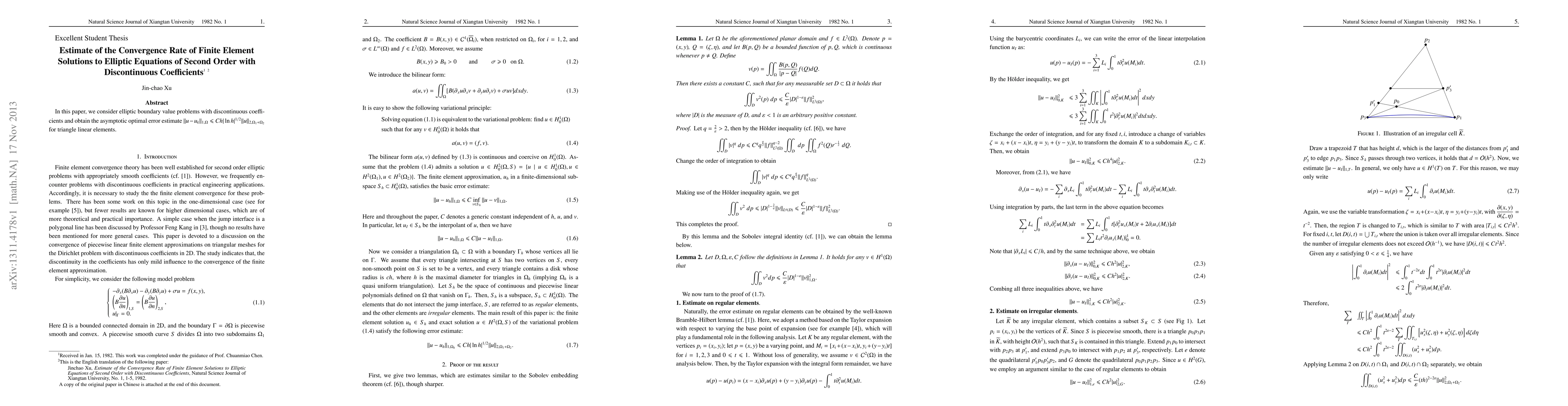 A new error estimate for finite element solutions to elliptic equations with discontinuous coefficients is presented, showing that the convergence rate is proportional to the square root of the logarithm of the mesh size.