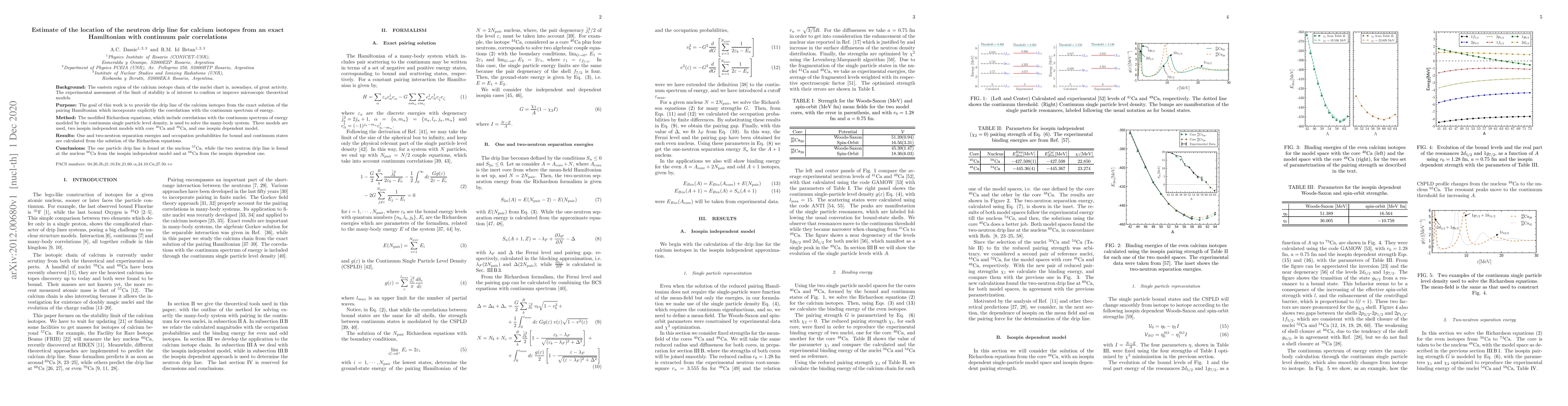 This paper estimates the neutron drip line for calcium isotopes using an exact Hamiltonian that includes continuum pair correlations. The study finds the one-neutron drip line at 57Ca and the two-neutron drip line at 60Ca for isospin-independent models, and at 66Ca for the isospin-dependent model.