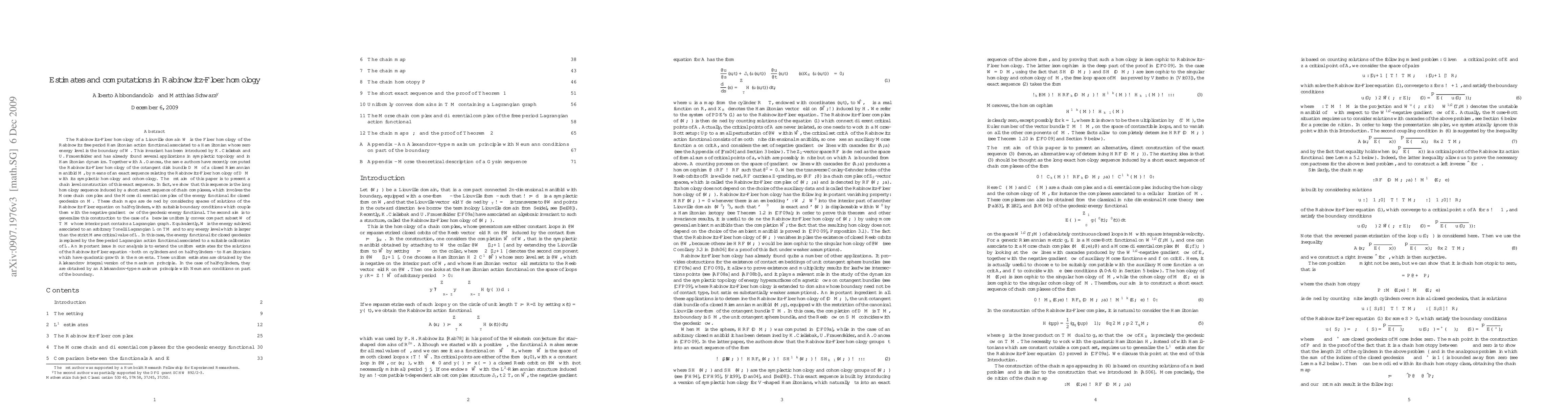 The Rabinowitz-Floer homology of a Liouville domain W is the Floer homology of the free period Hamiltonian action functional associated to a Hamiltonian whose zero energy level is the boundary of W. It has been introduced by K. Cieliebak and U. Frauenfelder. Together with A. Oancea, the same authors have recently computed the Rabinowitz-Floer homology of the cotangent disk bundle D^*M of a closed manifold M, by establishing a long exact sequence. The first aim of this paper is to present a chain level construction of this exact sequence. In fact, we show that this sequence is the long homology sequence induced by a short exact sequence of chain complexes, which involves the Morse chain complex and the Morse differential complex of the energy functional for closed geodesics on M. These chain maps are defined by considering spaces of solutions of the Rabinowitz-Floer equation on half-cylinders, with suitable boundary conditions which couple them with the negative gradient flow of the geodesic energy functional. The second aim is to generalize this construction to the case of a fiberwise uniformly convex compact subset W of T^*M whose interior part contains a Lagrangian graph. Equivalently, W is the energy sublevel associated to an arbitrary Tonelli Lagrangian L on TM and to any energy level which is larger than the strict Mane' critical value of L. In this case, the energy functional for closed geodesics is replaced by the free period Lagrangian action functional associated to a suitable calibration of L. An important issue in our analysis is to extend the uniform estimates for the solutions of the Rabinowitz-Floer equation to Hamiltonians which have quadratic growth in the momenta. These uniform estimates are obtained by suitable versions of the Aleksandrov maximum principle.