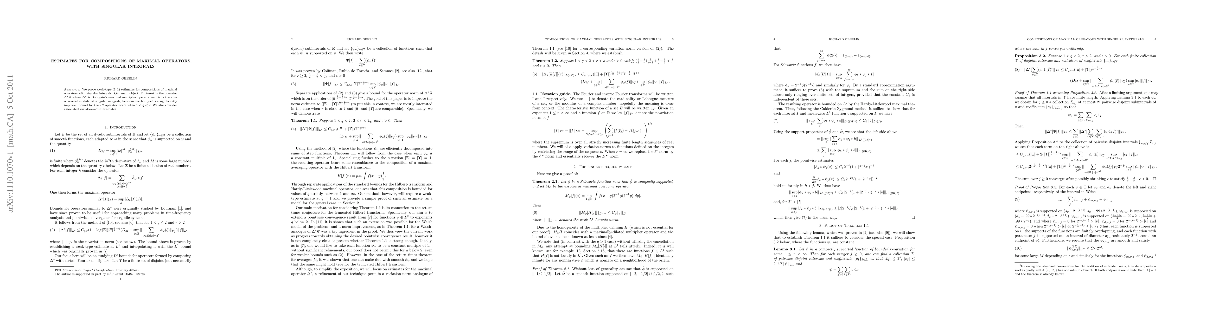 We prove weak-type (1,1) estimates for compositions of maximal operators with singular integrals. Our main object of interest is the operator $\Delta^*\Psi$ where $\Delta^*$ is Bourgain's maximal multiplier operator and $\Psi$ is the sum of several modulated singular integrals; here our method yields a significantly improved bound for the $L^q$ operator norm when $1 < q < 2$. We also consider associated variation-norm estimates.