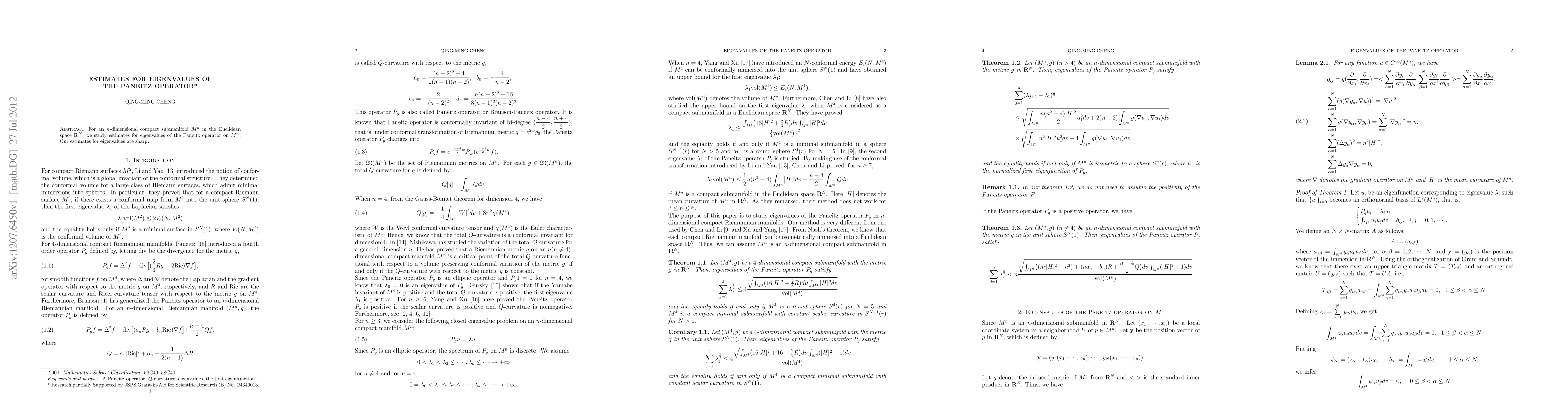 Summary: This paper provides sharp estimates for the eigenvalues of the Paneitz operator on an $n$-dimensional compact submanifold $M^n$ within the Euclidean space $\mathbf R^{N}$. The estimates are shown to be optimal.
