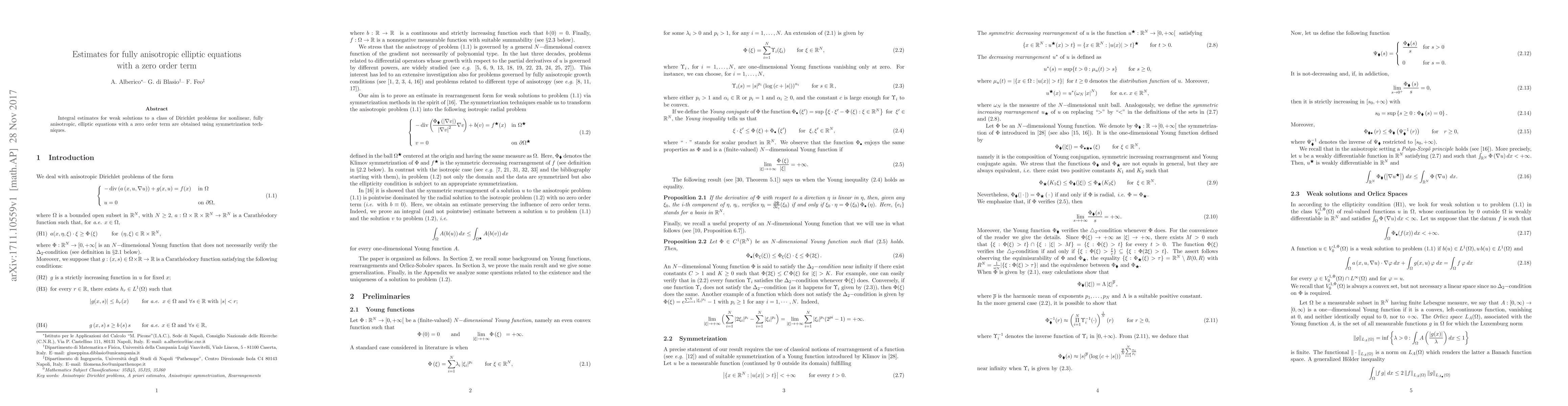 Summary: This paper derives integral estimates for weak solutions of Dirichlet problems involving nonlinear, fully anisotropic elliptic equations with a zero-order term, utilizing symmetrization techniques. The results provide valuable insights into the behavior of these solutions.