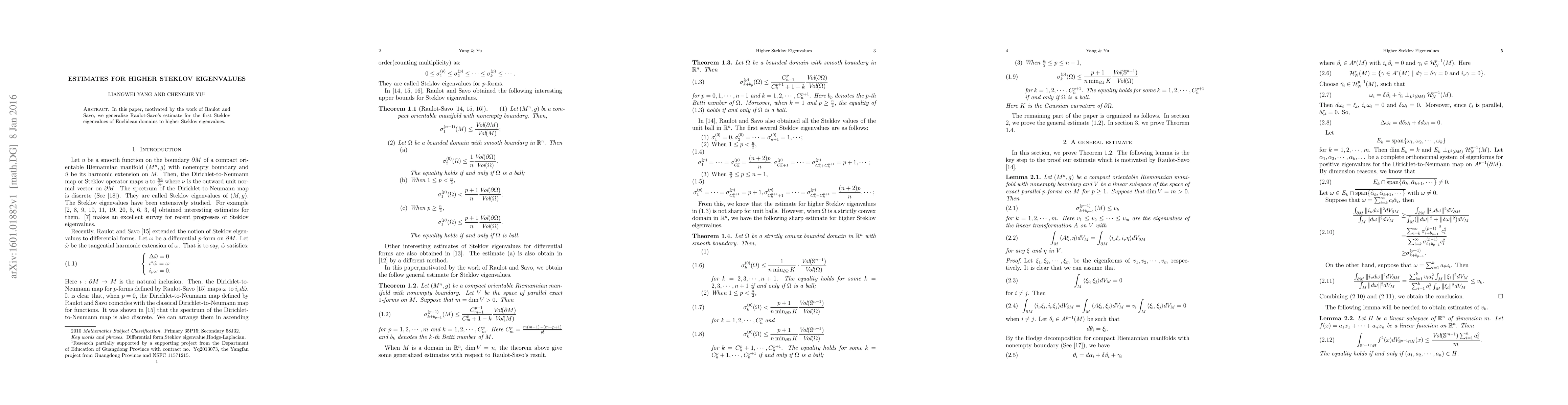 This paper generalizes the Raulot-Savo estimate for the first Steklov eigenvalue to higher Steklov eigenvalues of Euclidean domains, building on prior work in the field. The new estimates provide further insights into the spectral properties of these domains.