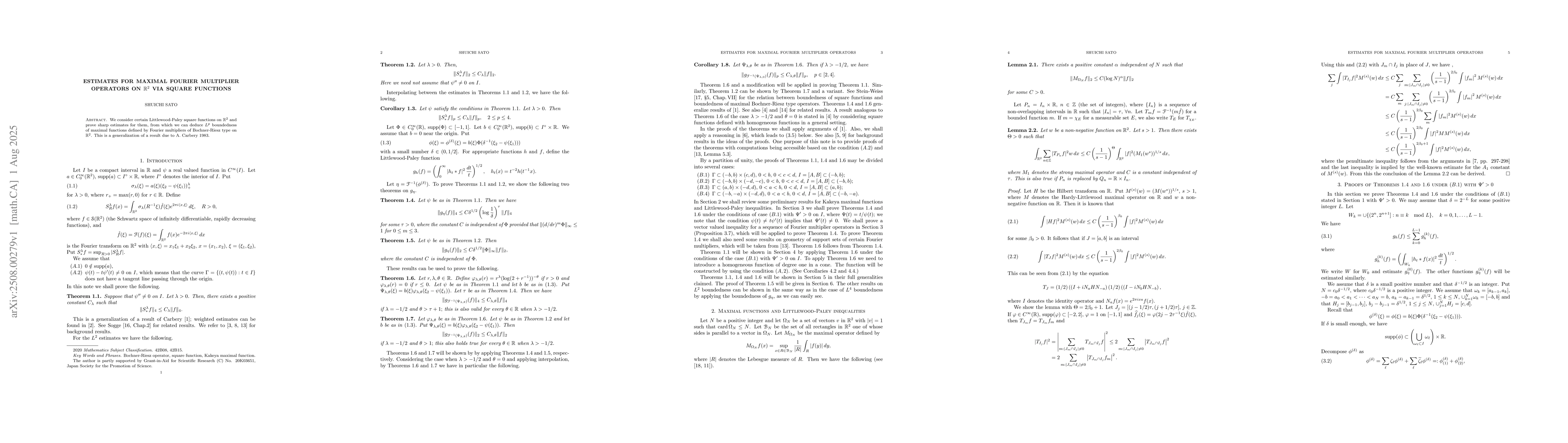 We consider certain Littlewood-Paley square functions on $\Bbb R^2$ and prove sharp estimates for them, from which we can deduce $L^p$ boundedness of maximal functions defined by Fourier multipliers of Bochner-Riesz type on $\Bbb R^2$. This is a generalization of a result due to A. Carbery 1983.