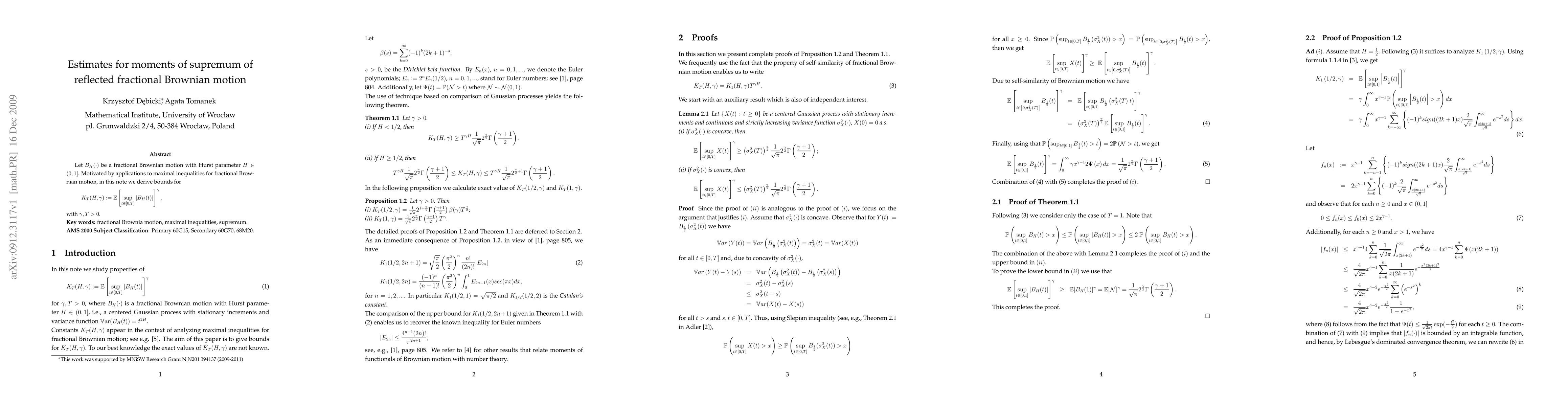 This paper derives bounds for the moments of the supremum of reflected fractional Brownian motion, specifically focusing on $K_T(H,\gamma) = E[\sup_{t\in[0,T]}|B_H(t)|]^\gamma$, with $H\in(0,1]$ and $\gamma, T>0$, motivated by applications in maximal inequalities for fractional Brownian motion.