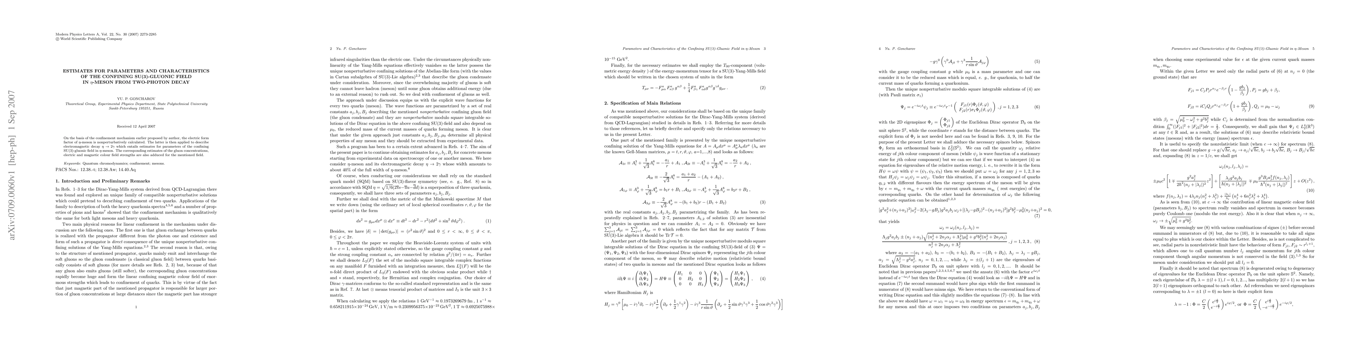 This paper calculates the electric form factor of the $\eta$-meson nonperturbatively using the author's confinement mechanism, and applies it to estimate the parameters of the confining SU(3)-gluonic field in $\eta$-meson, including gluon concentrations and colour field strengths, through the electromagnetic decay $\eta\to2\gamma$.